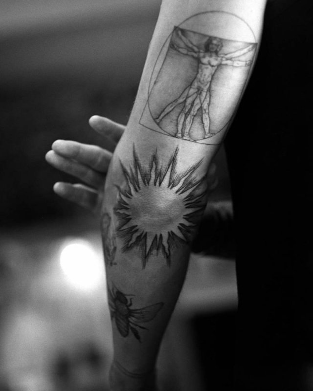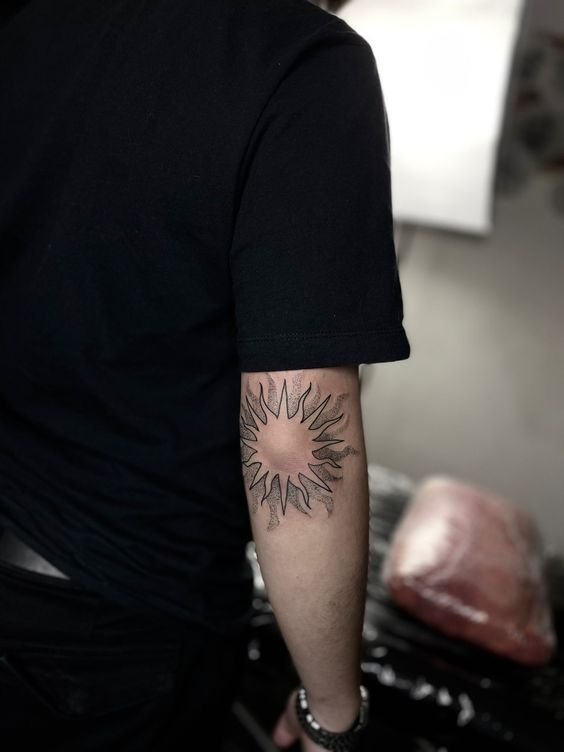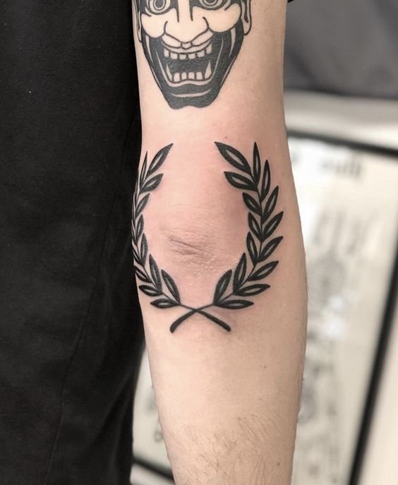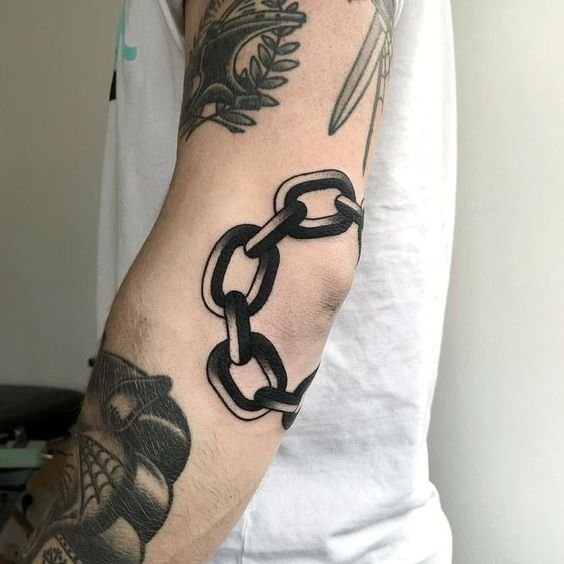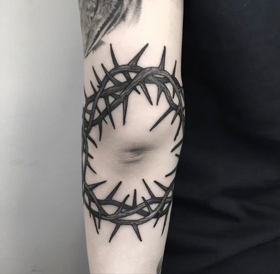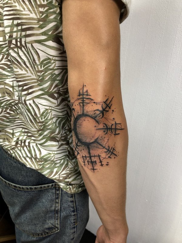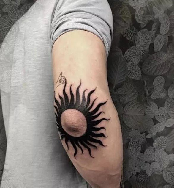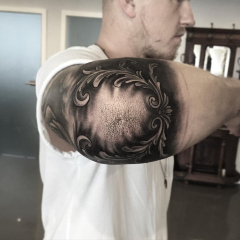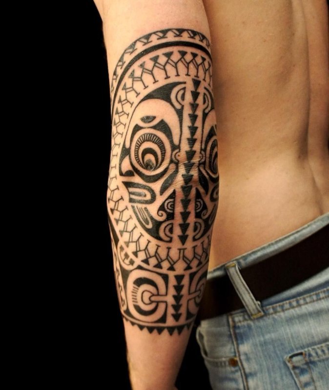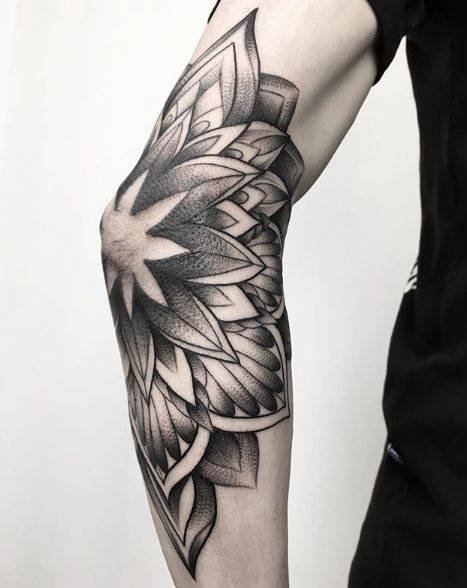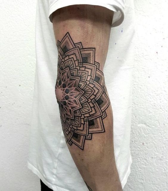 Этот участок идеально подходит для изображения сферических объектов (планеты, глаза, геометрические фигуры и т.д.) или композиций с соответствующей композицией (мандалы, паутина, символы Инь и Янь и другие). Мужские тату на локте обычно размещаются прямо на суставе, в месте, где он соединяется с верхней и нижней частями руки, однако, иногда используется и внутренняя частица локтя. Область вокруг локтевого сустава художники также не обходят стороной, чтобы задействовать максимум пространства.