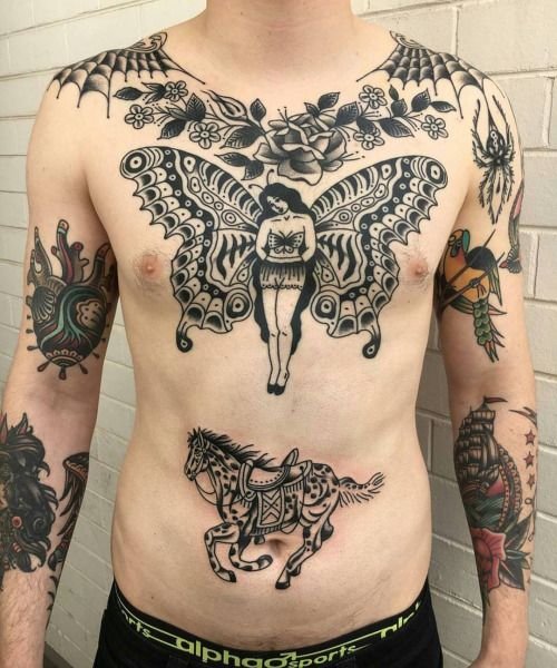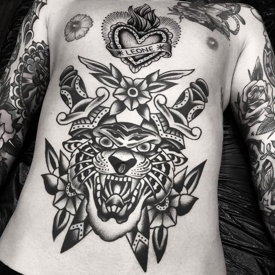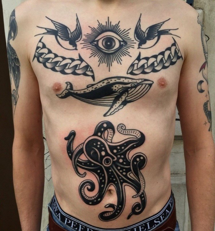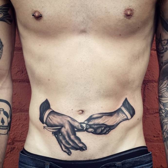 Мужские тату на животе: