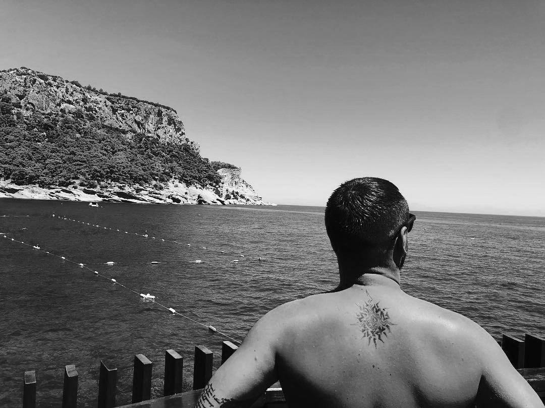 Значимые татуировки Монатика на этом не заканчиваются. Сзади на спине немного ниже шеи изображено солнце, которое является своеобразным талисманом. Вытатуированное светило наполняет обладателя позитивной энергией и приносит удачу. На левом предплечье – оригинальная надпись. В целом артист отдает предпочтение лаконичным, небольшим визуальным знакам, которые сложно разгадать без подсказки.