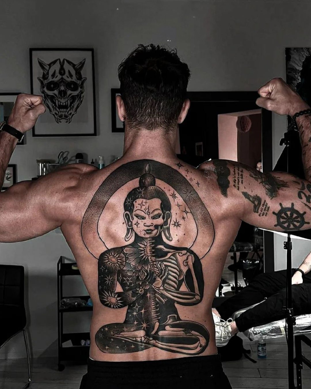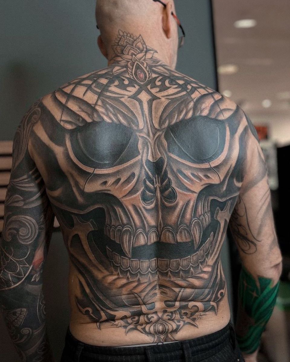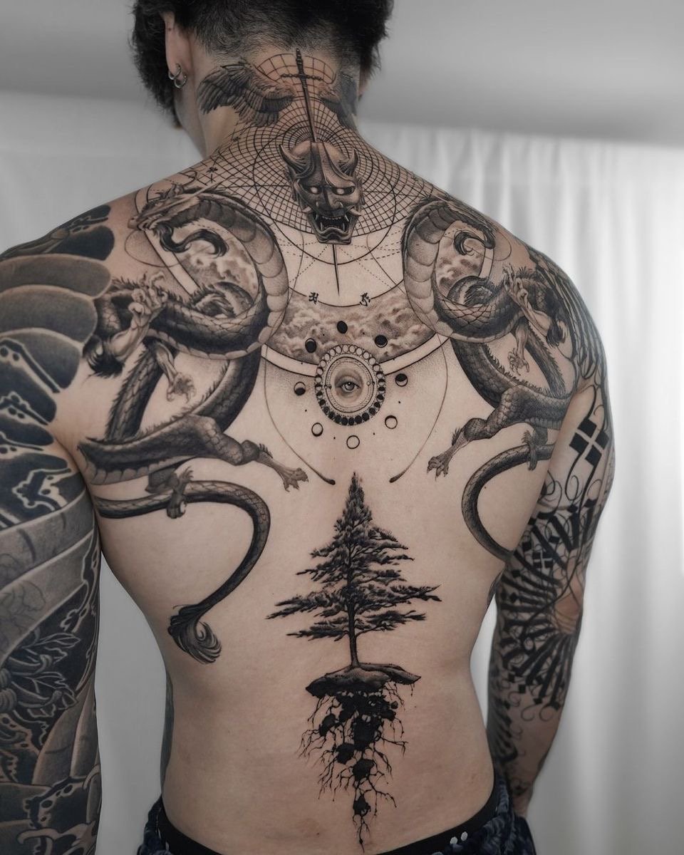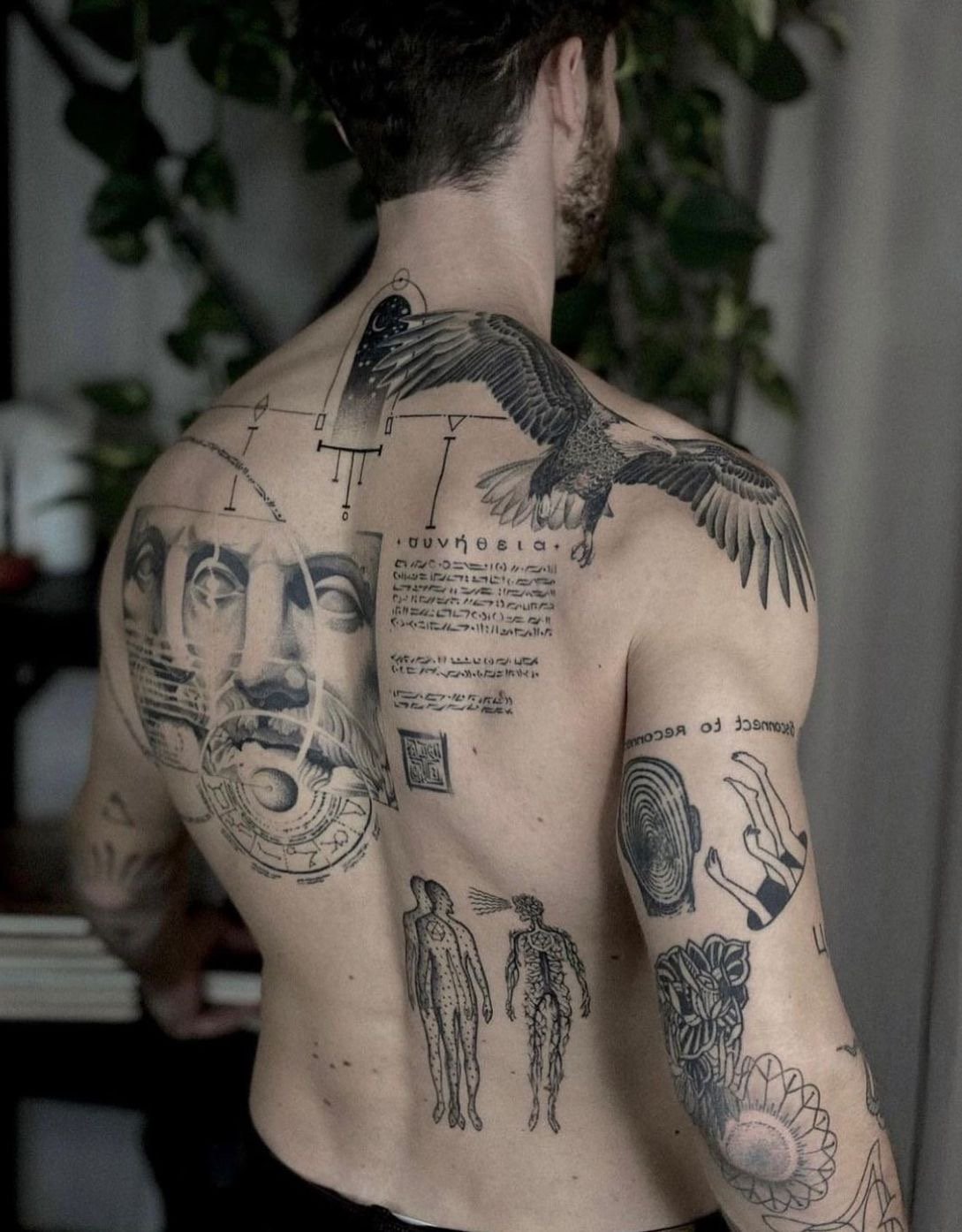 Этот вид украшения становится частью образа, отражая внутренний мир и создавая особую атмосферу уверенности. Мужская спина предоставляет художнику простор для творчества, что открывает возможность создавать уникальные и масштабные проекты, которые невозможно реализовать на других участках тела.