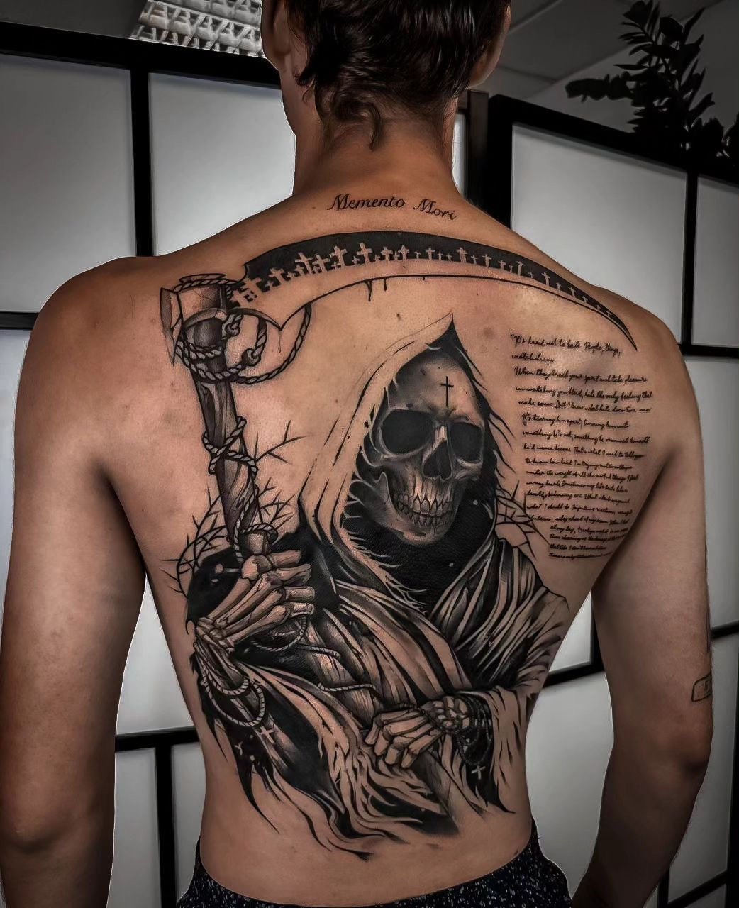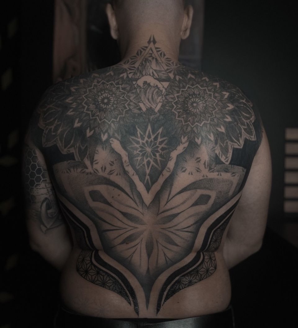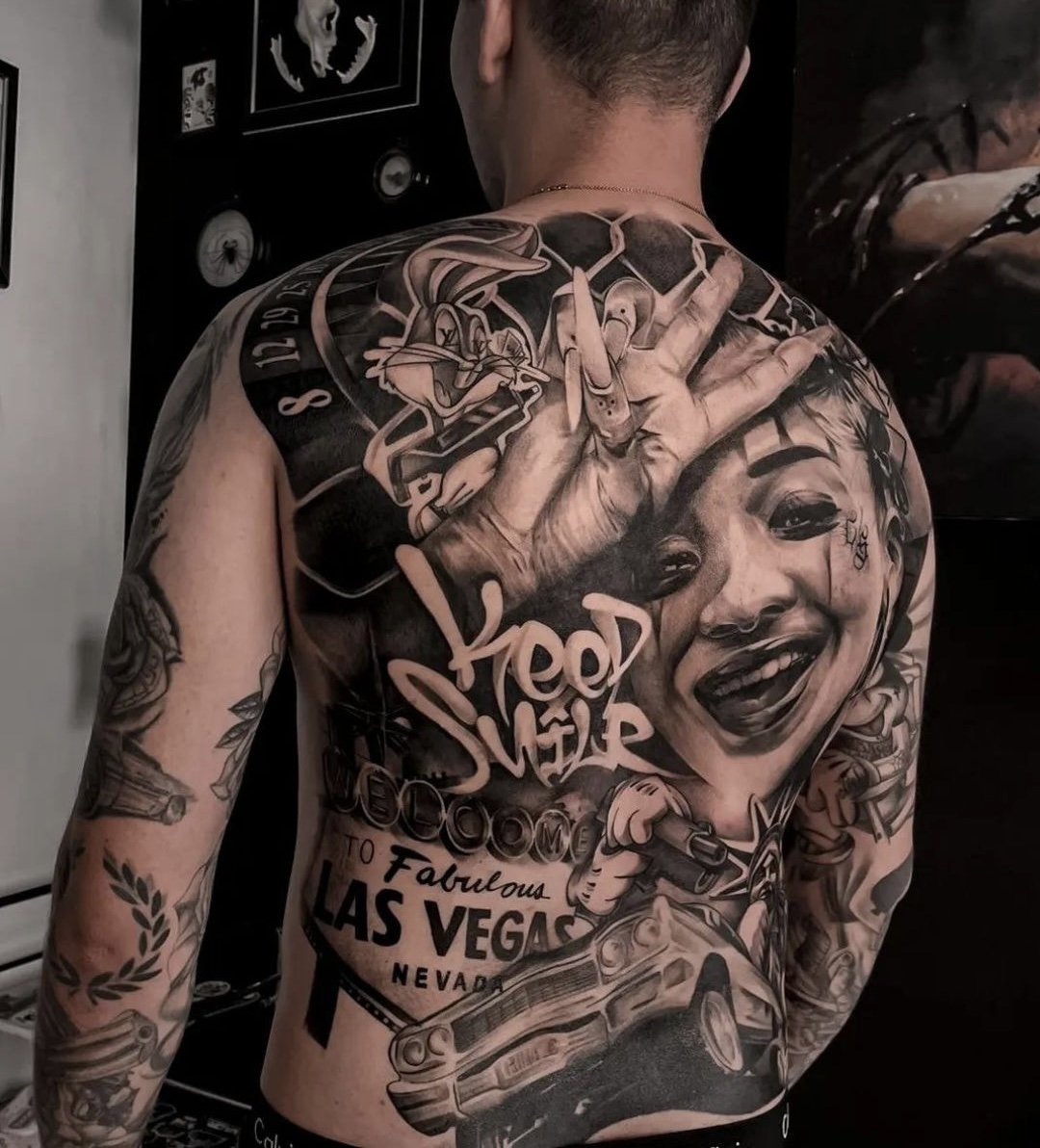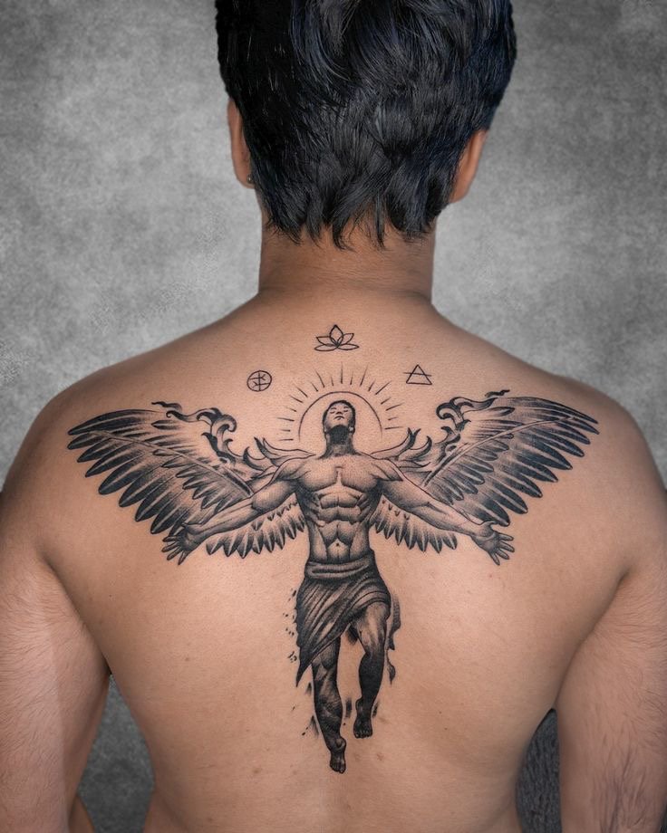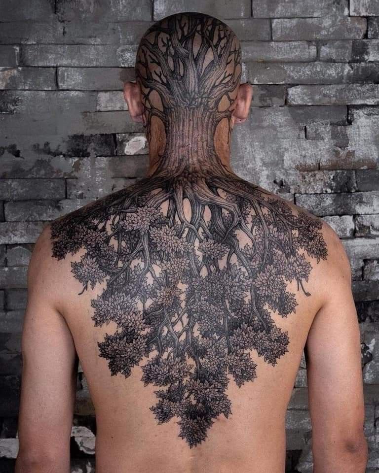 Этот вид украшения становится частью образа, отражая внутренний мир и создавая особую атмосферу уверенности. Мужская спина предоставляет художнику простор для творчества, что открывает возможность создавать уникальные и масштабные проекты, которые невозможно реализовать на других участках тела.