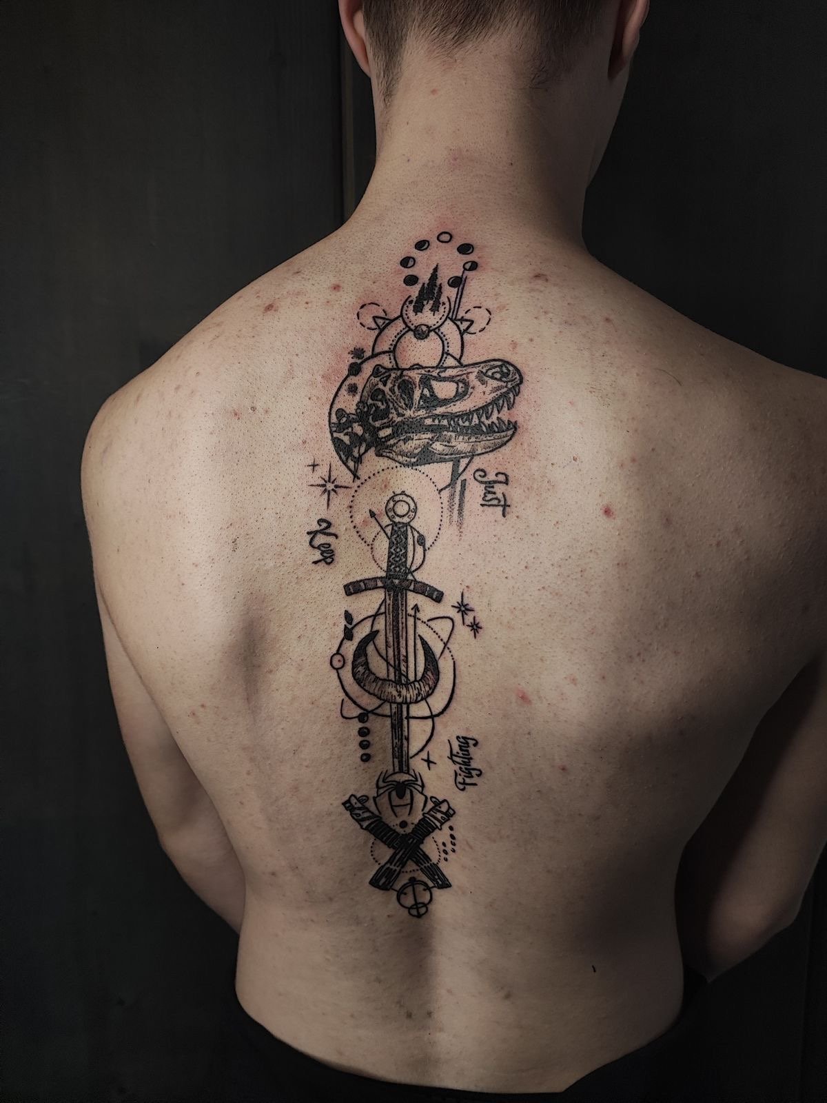 - Планирование расположения: размещение нового тату на спине, например, в зоне лопатки, должно учитывать, как оно будет взаимодействовать с остальными элементами.