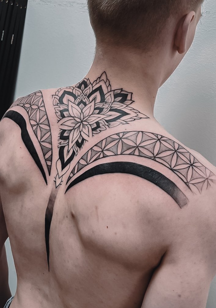 Особое внимание уделяется крупным орнаментом, таким как мужские тату на спине, которые подчёркивают силу характера и создают впечатляющий эффект. Такой выбор часто становится символом важных жизненных этапов или глубоких убеждений.