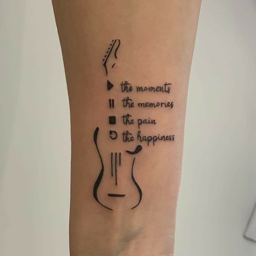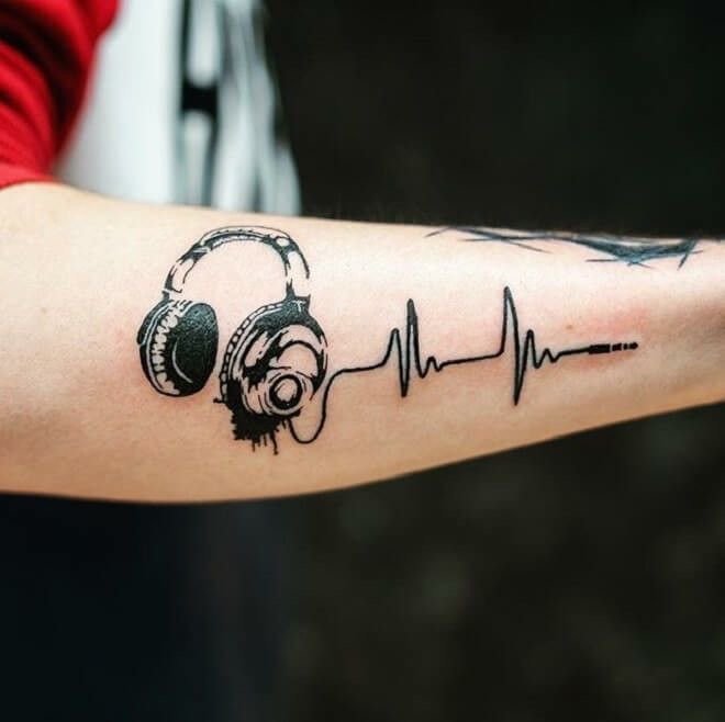 Музыка помогает сохранять хорошее настроение в любой ситуации и преодолевать препятствия на жизненном пути. Татуировка несет позитивный посыл и повышает устойчивость к стрессам. Нательные рисунки, связанные с музыкой, подходят для начинающих поклонников культуры тату. Сделайте небольшую татуировку, чтобы впоследствии продолжить, дополнив изображение новыми деталями и надписями.