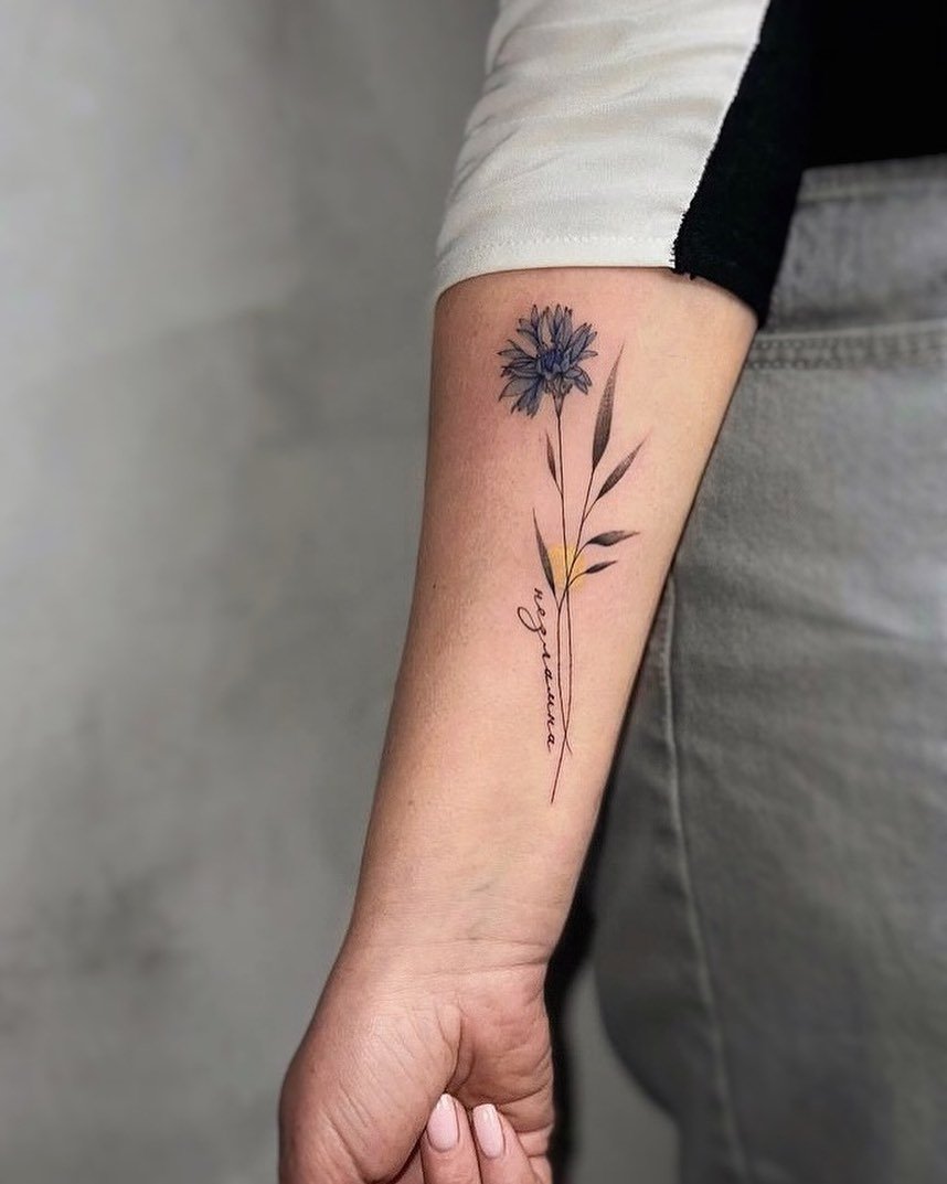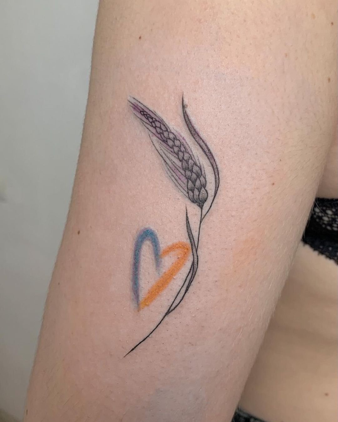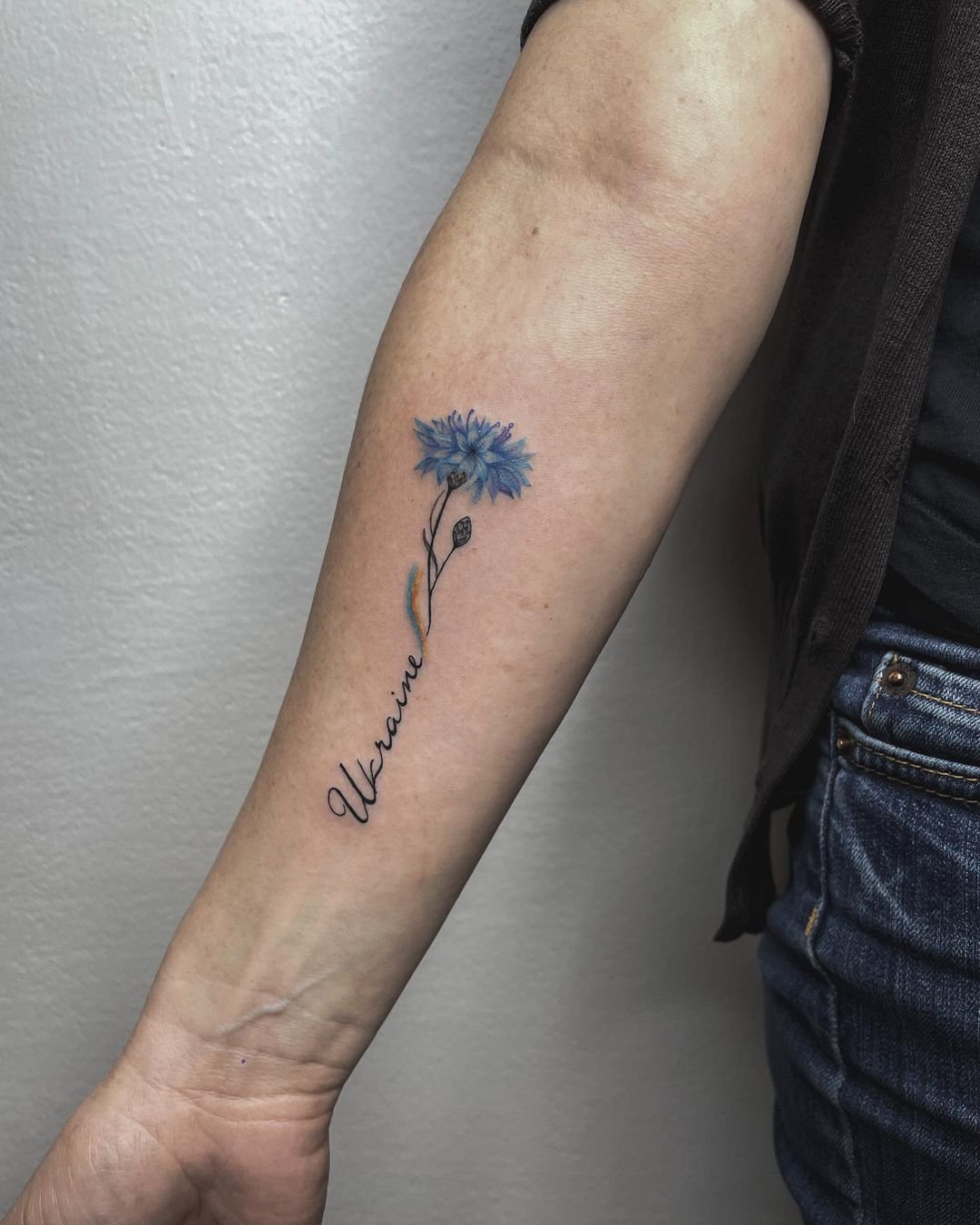 Если до войны девушки делали тату цветов, птиц, бабочек в акварельном стиле, то сегодня они также выбирают цветные нежные рисунки, но просят сделать их на желто-голубом фоне.