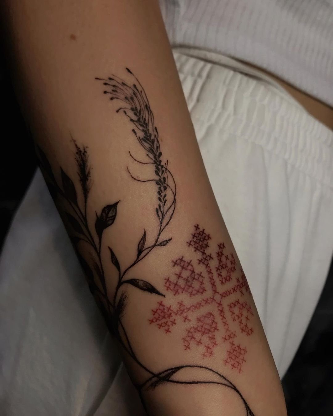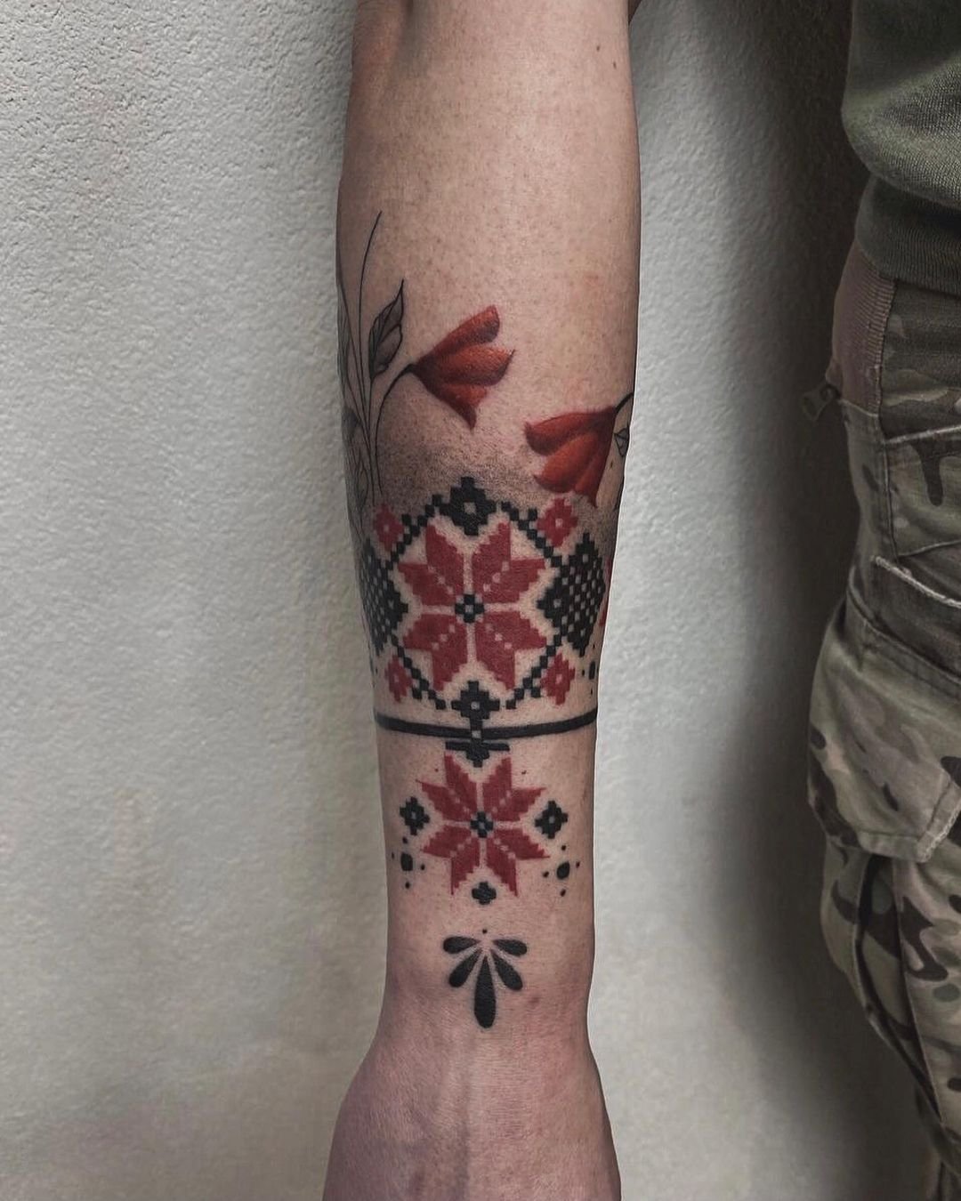 - Татуировка орнамента (вышиванки) демонстрирует любовь к родине, уважение к предкам, уважение к традициям.