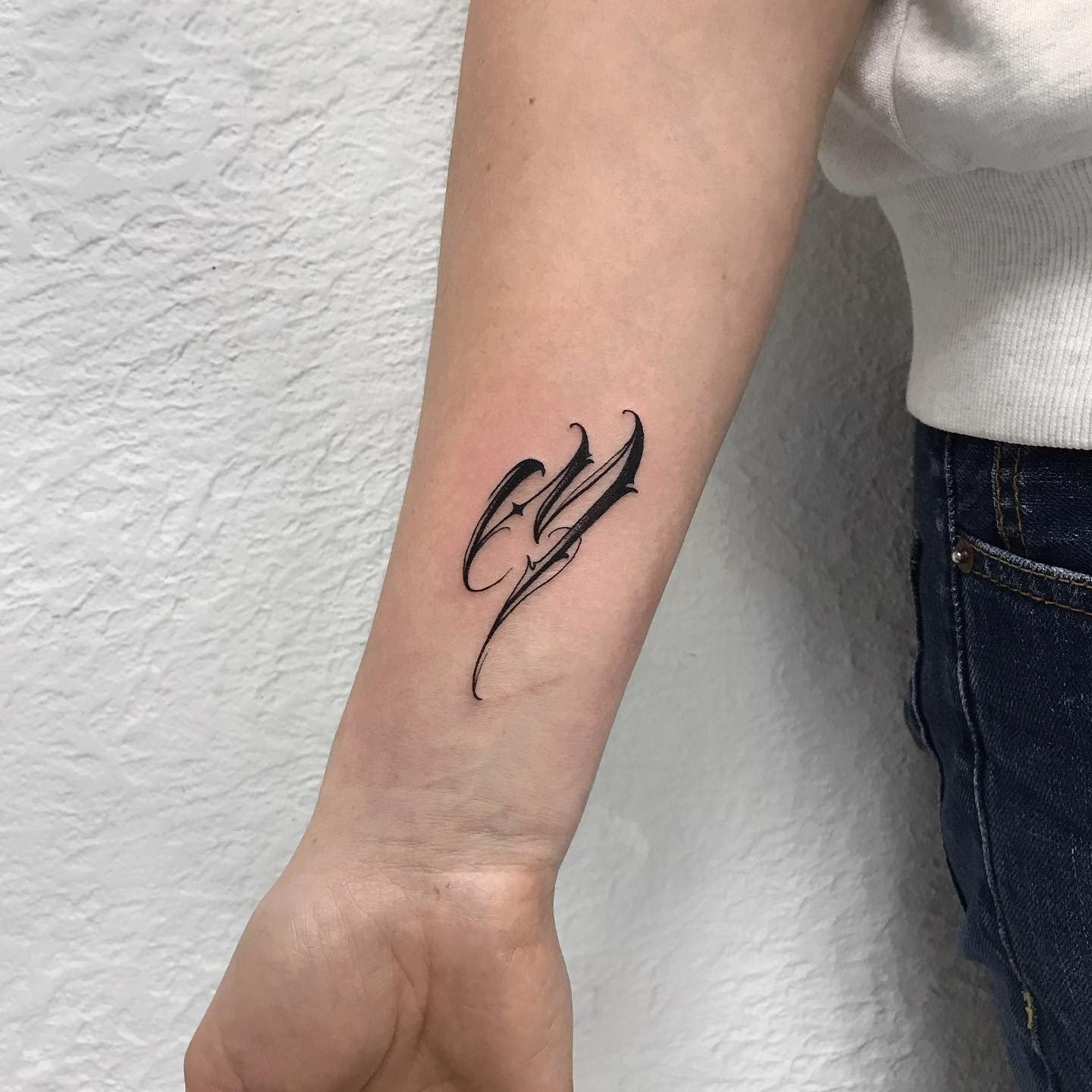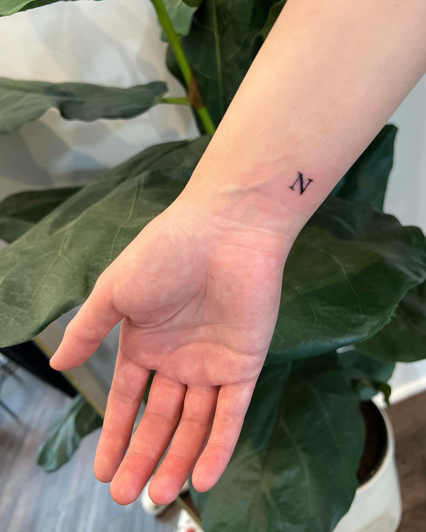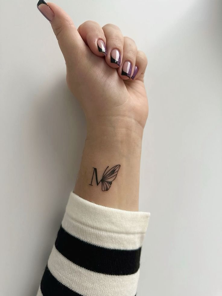 - Подходят в качестве первого опыта. Благодаря лаконичной простой форме татуировка выигрышно смотрится независимо от размера. Чтобы начать свой путь украшения тела чернилами, выбирайте маленькие тату с буквами.