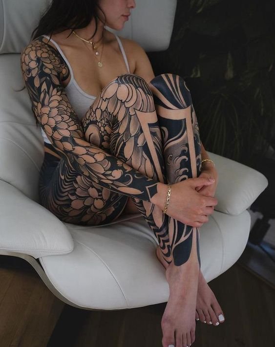 Женщины, делающие татуировки на всё тело, стремятся показать свою индивидуальность, а также подчеркнуть грациозность и эстетику.