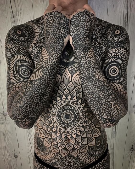 Это настоящий путь самовыражения, который сочетает в себе многолетнюю работу мастера, глубокий символизм и уникальный стиль. Татуировка, покрывающая всю поверхность кожи, превращает тело в живой холст, на котором запечатлены мечты, символы и истории.