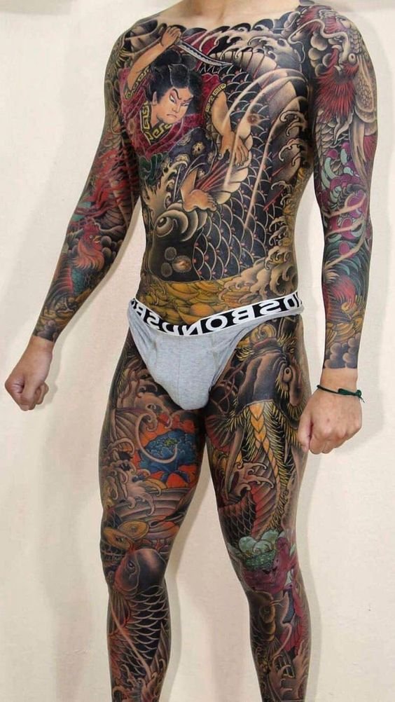 - Японский стиль (Ирезуми): это одно из самых популярных направлений для татуировок на все тело. Традиционные мотивы включают драконов, карпов, цветы лотоса, а также символы силы и удачи.