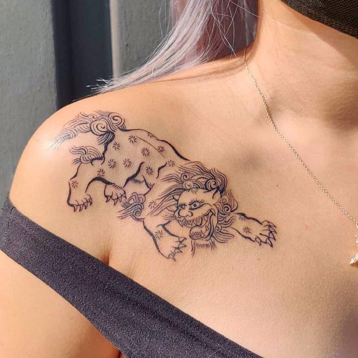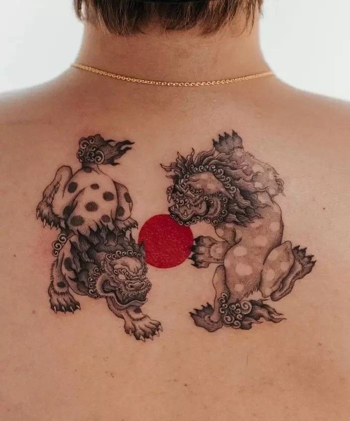 - Один из значимых японских символов, который представляет собой собаку с львиной гривой. Согласно древней легенде мифическое животное защищает дом от кражи, грабежа и других неприятностей. На теле человека изображение означает защиту от темных сил, преодоление трудностей и решение проблем.