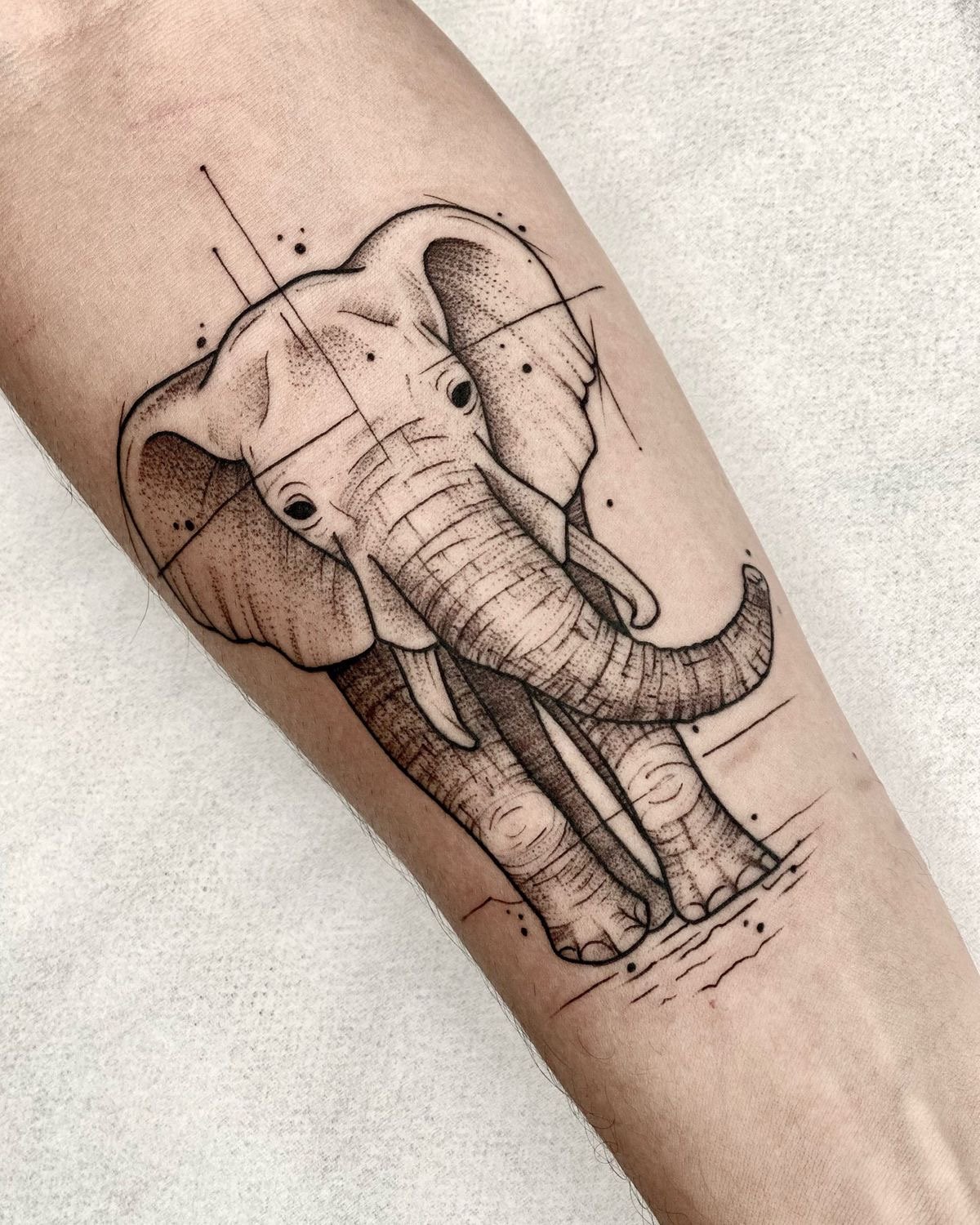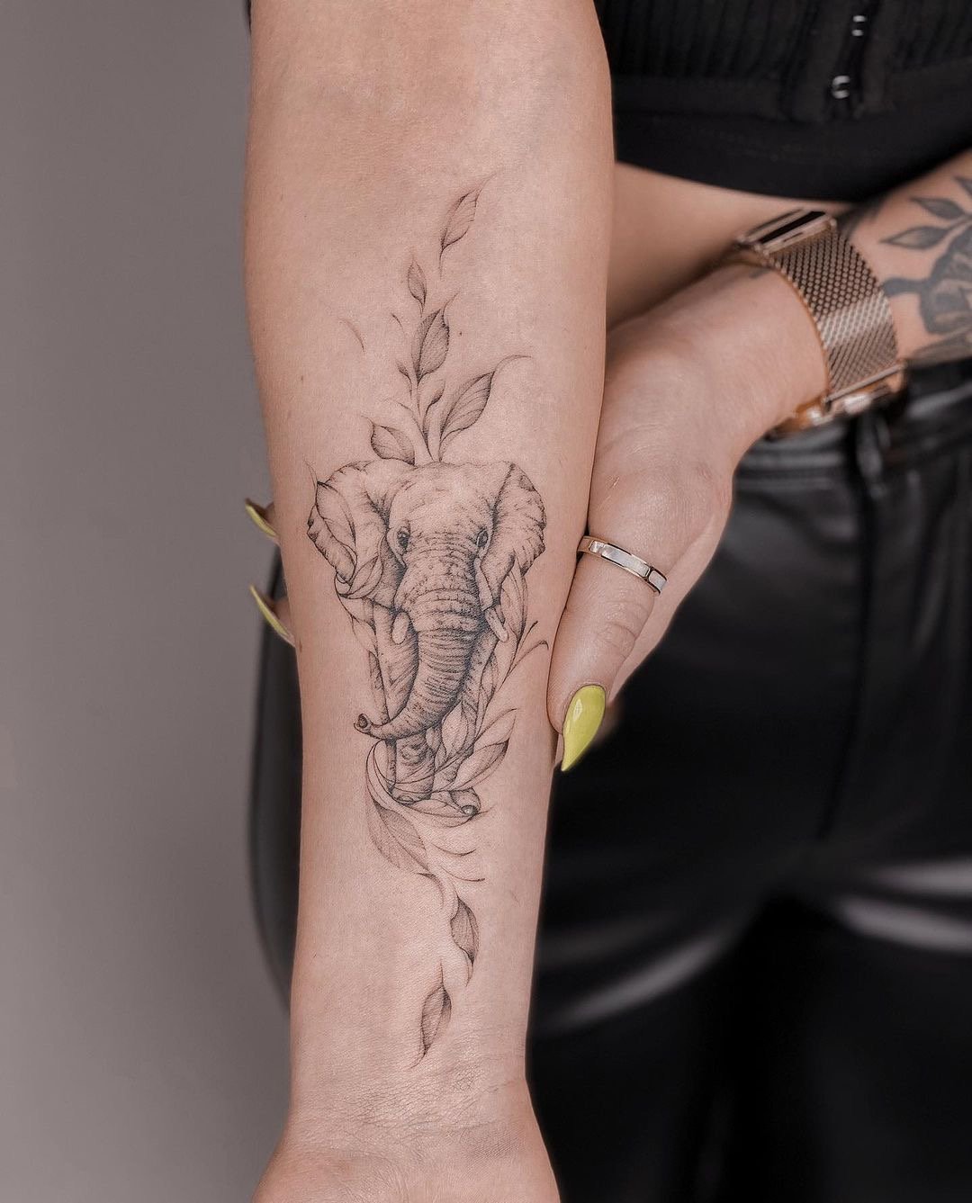 - Знак достатка и долголетия, физического здоровья и счастливой любви. Татуировка слона также означает приверженность семейным ценностям, силу и мудрость.
