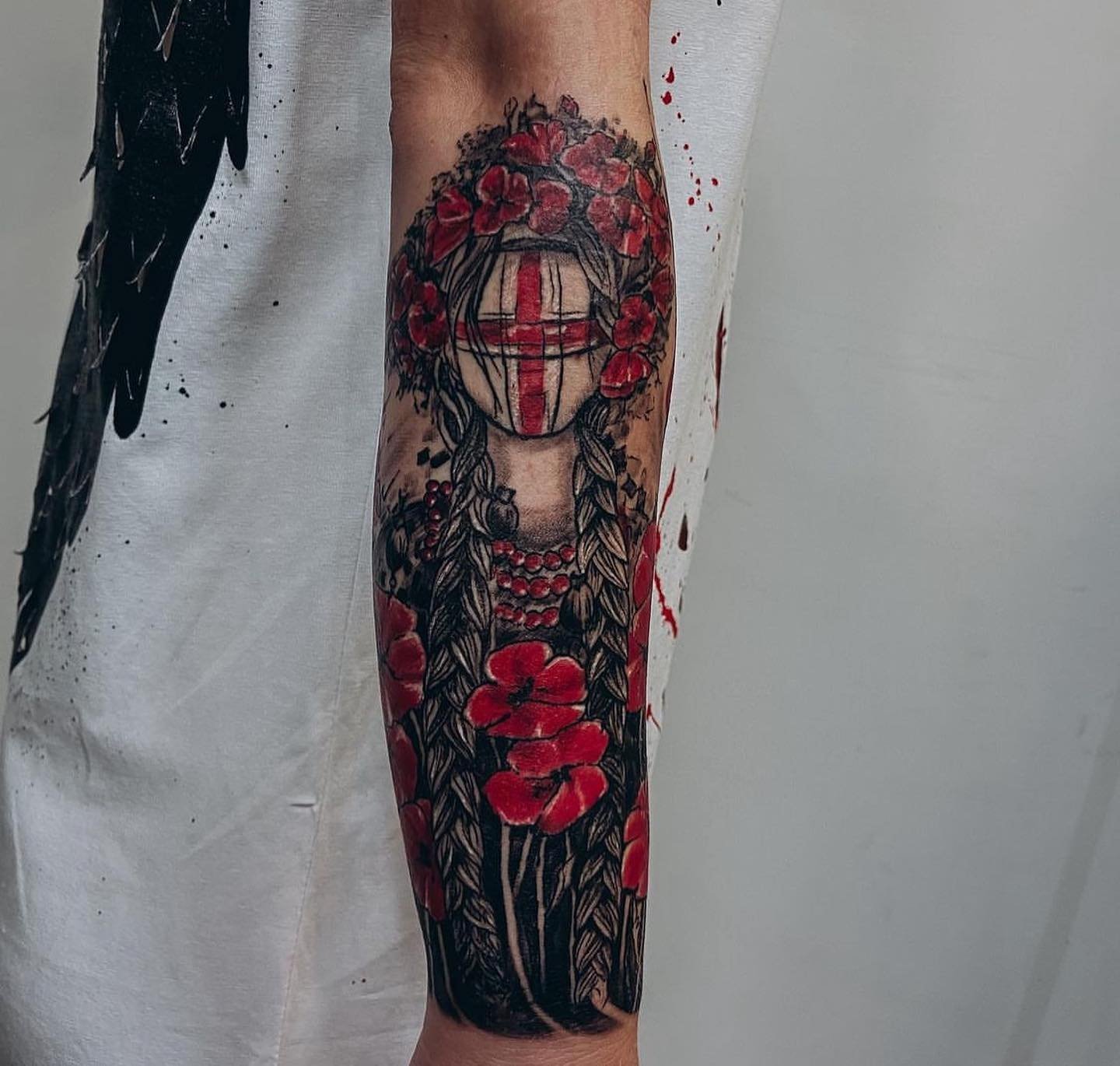 Также красные, белые и черные цвета занимают лидерские позиции. Можно использовать различные стили и современные эффекты. Женская патриотическая татуировка должна быть уникальной, именно для этого и стоит обратиться за помощью к мастерам студии VEAN.