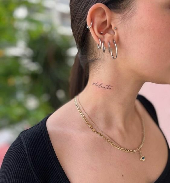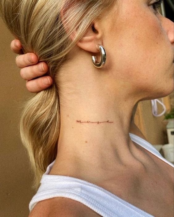 Буквы и имена – популярный выбор, когда речь заходит о тату на шее для женщин и девушек.