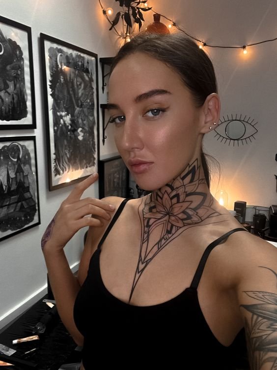 При выборе дизайна татуировки для девушек на горле следует проявить осмотрительность.