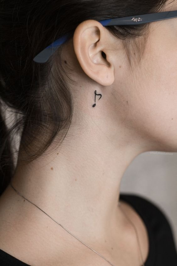 Ассоциируется с любовью к музыке и надеждой на лучшее будущее. Другой вариант — сердце. Татуировка сердца в зависимости от стиля исполнения и контекста символизирует привязанность и страсть, разочарование и боль. Сбоку на женской шее выигрышно смотрится нательный рисунок в виде короны, который символизирует благородство и власть, победу и превосходство. Другие варианты — светлячок, изображение тотемных животных, римские цифры.
