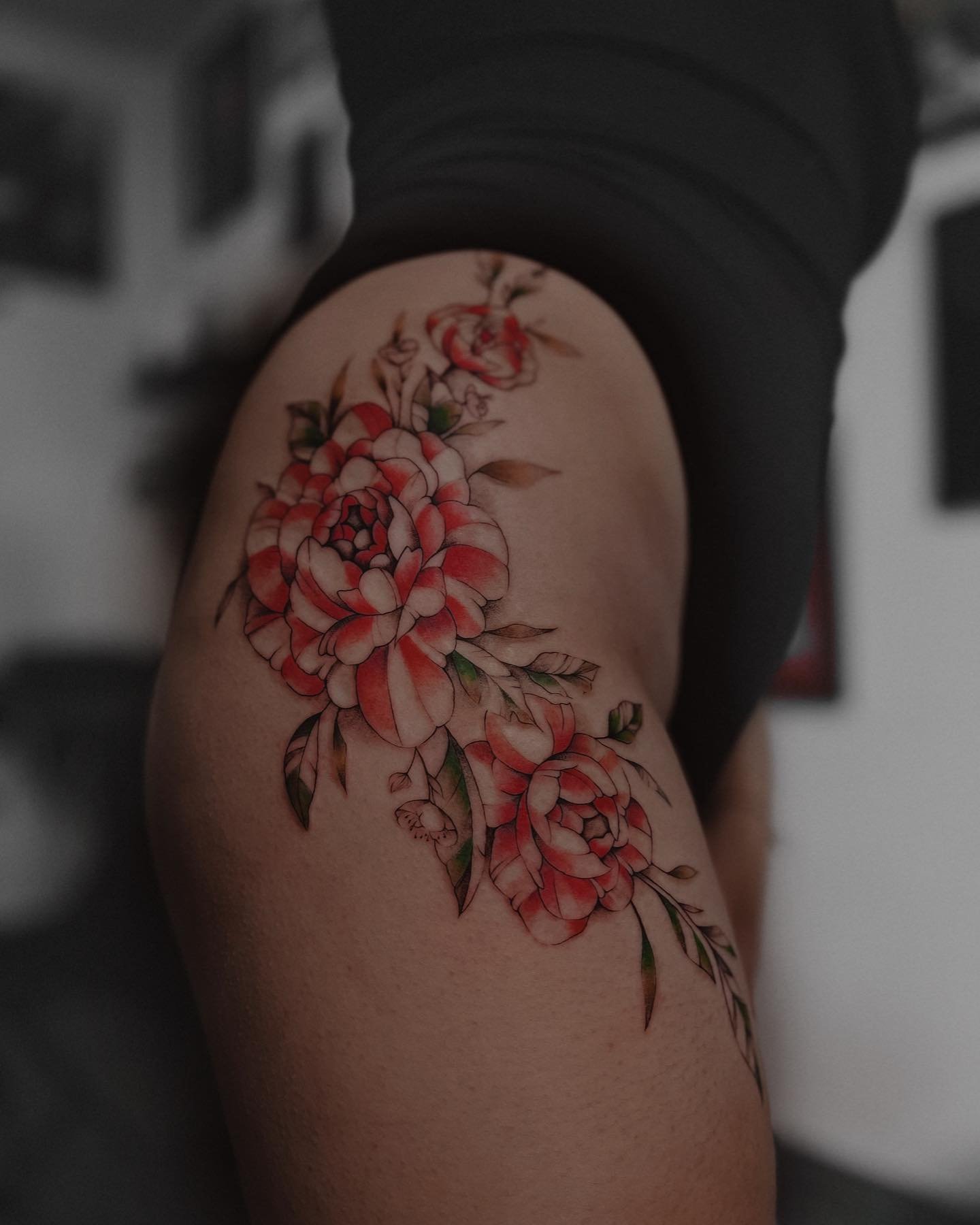 Большинство мест на бедре имеют небольшое количество нервных окончаний и значительный слой мышц. По сравнению со многими другими участками, татуировки на бедре менее болезненны.
