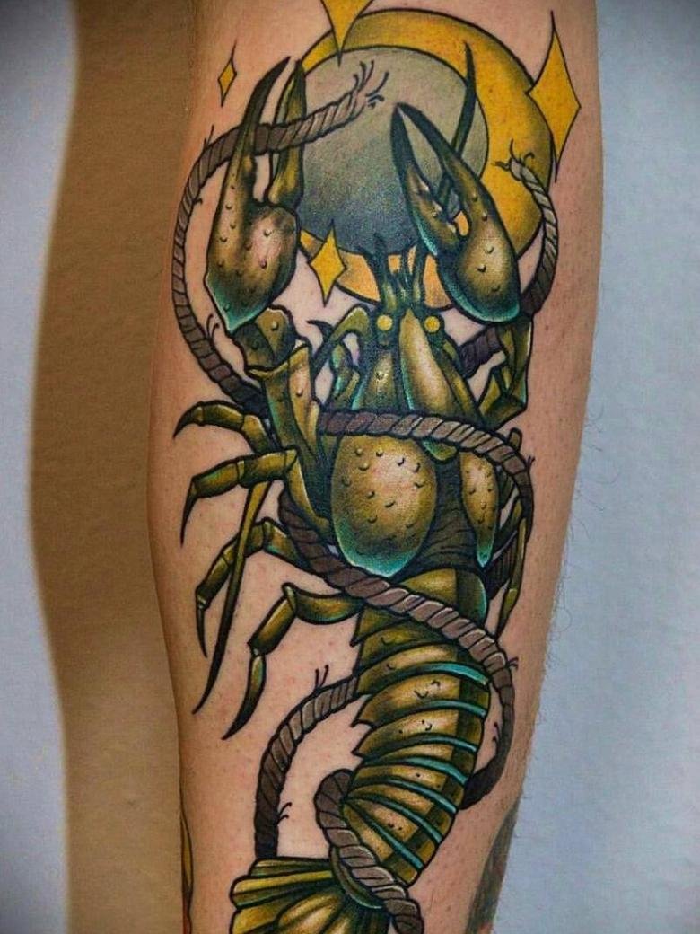 Традиционные символы этой татуировки, а именно различные изображения рака в сочетании с дополнительными элементами будут выглядеть стильно на любой части тела.