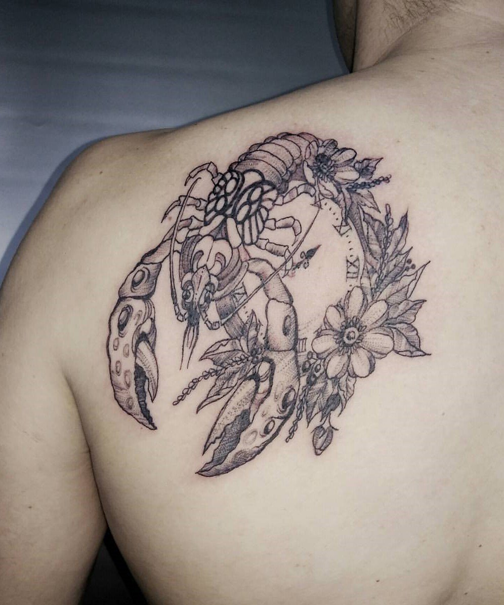 Однако эскизы тату знак зодиака Рак все же имеют ряд схожих черт.
