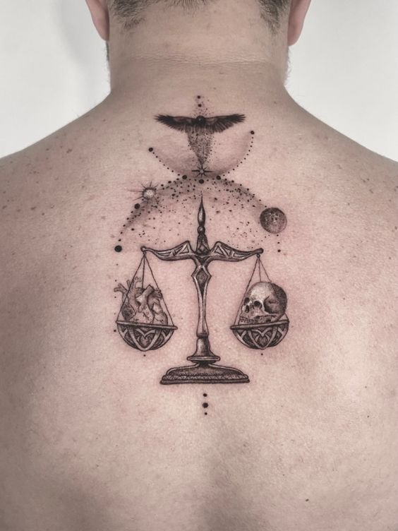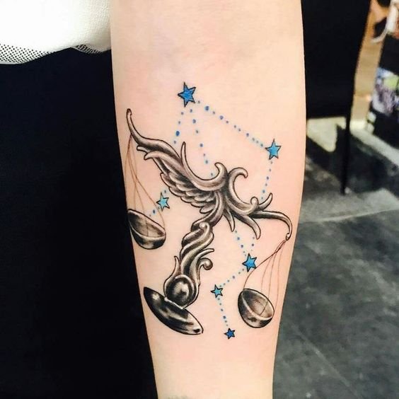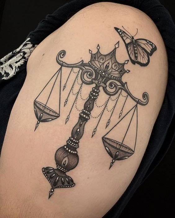 Учитывая размеры среди самых популярных мужских локаций тату знак зодиака Весы: