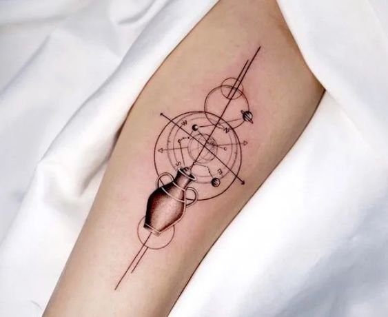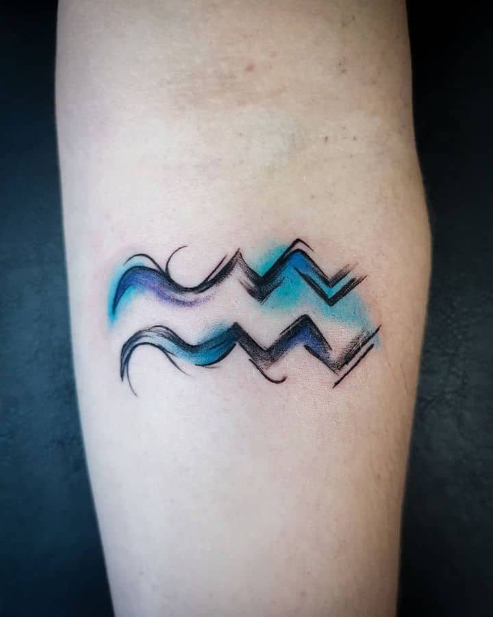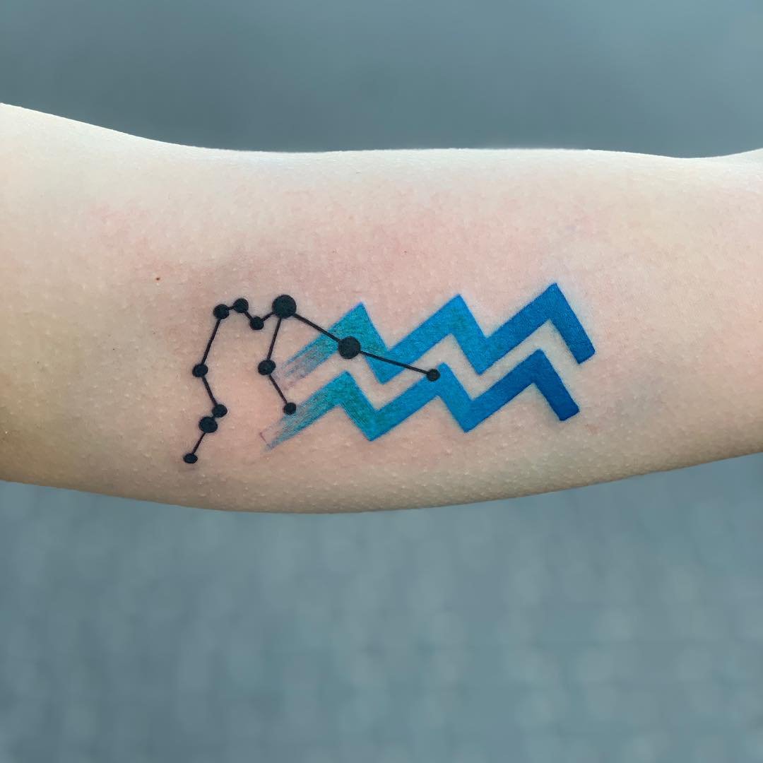 Тату знак зодиака Водолей выглядит оригинально и даже загадочно.
