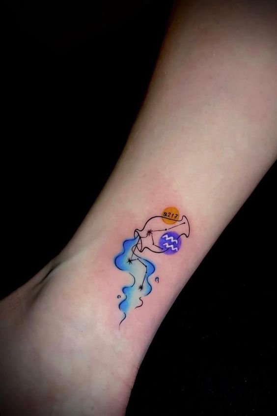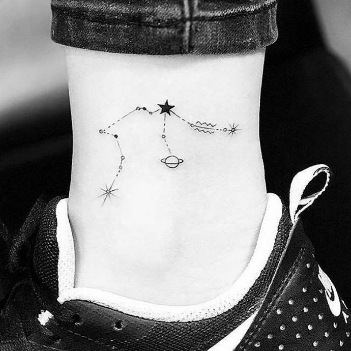- Тату созвездие знак зодиака Водолей на щиколотках.