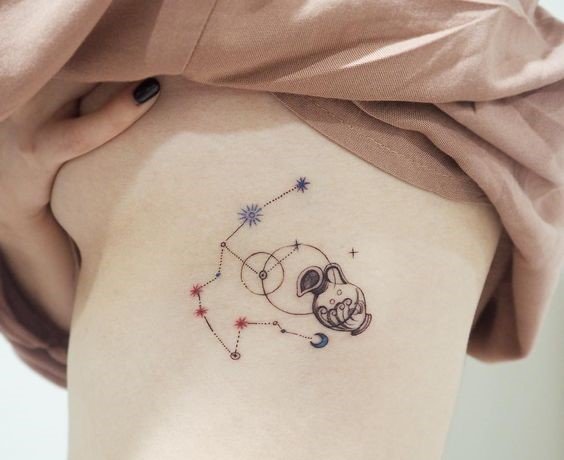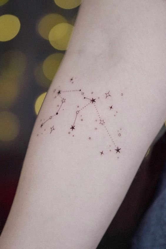 - Тату созвездие знак зодиака Водолей на запястьях;