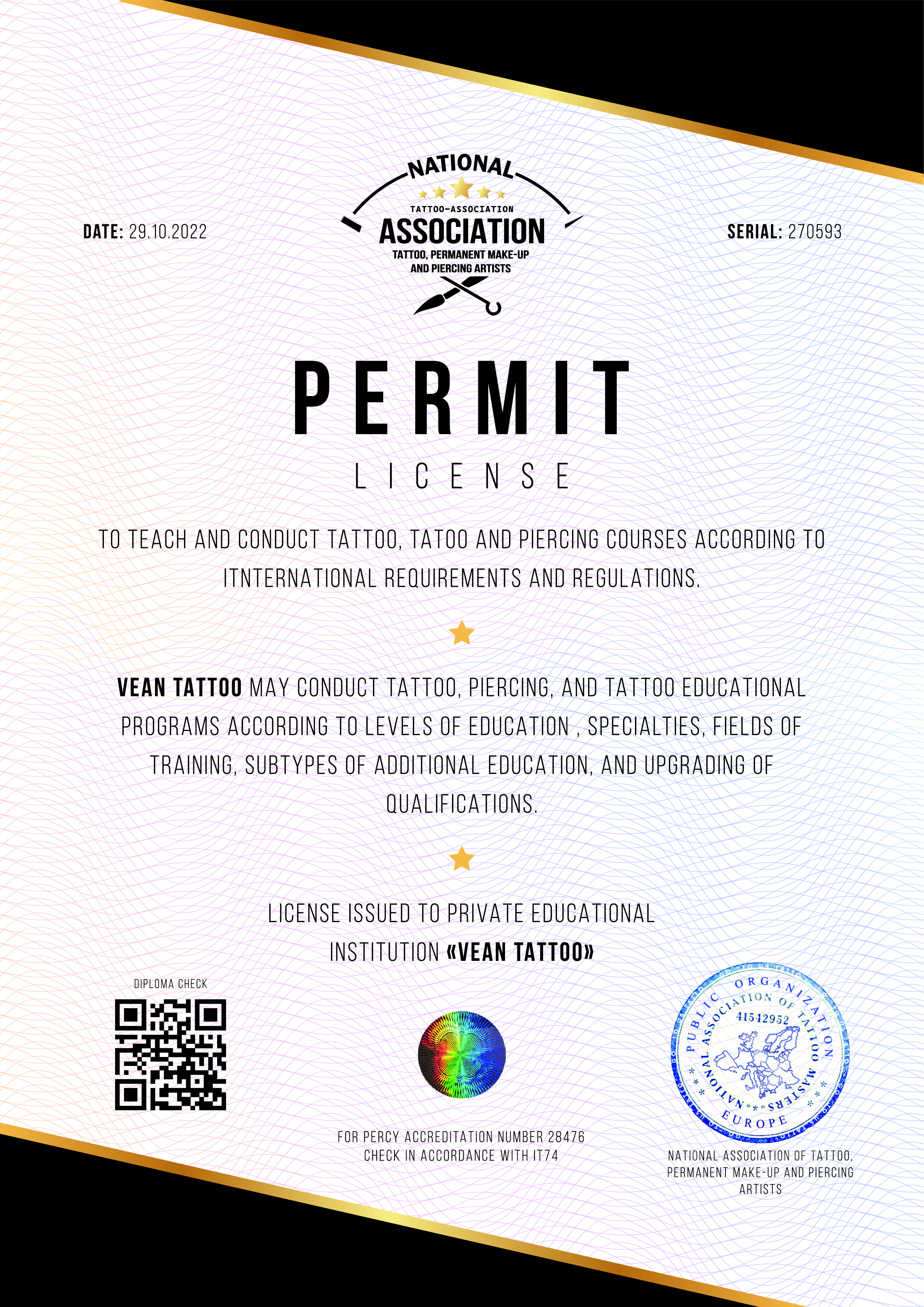 Being experts in tattoo, permanent make-up and piercing, NAM representatives are ready to answer any questions related to the verification of the artist’s diploma.