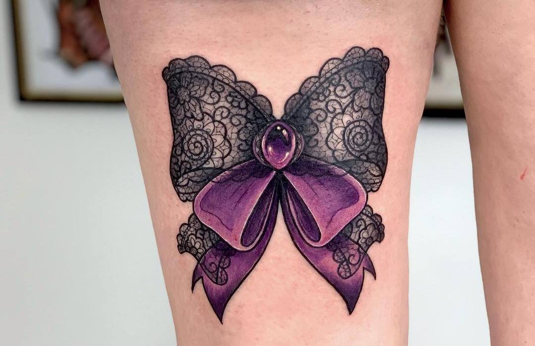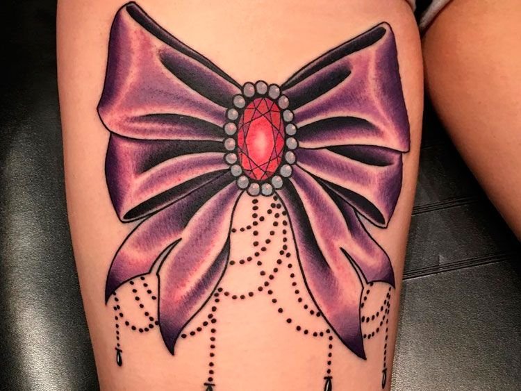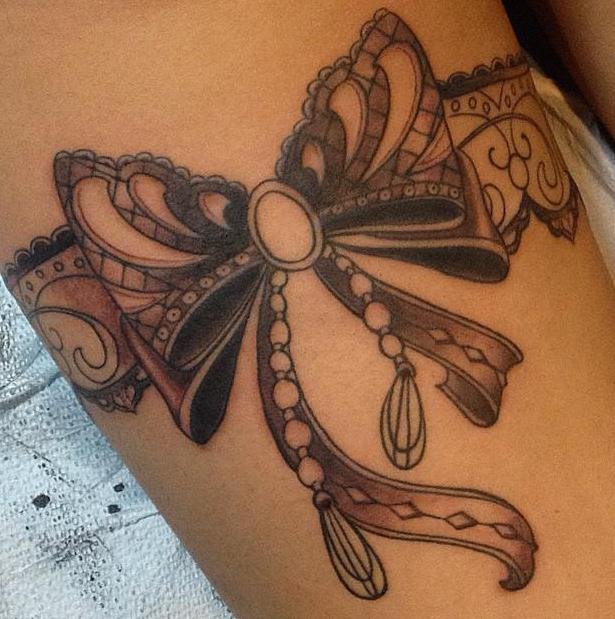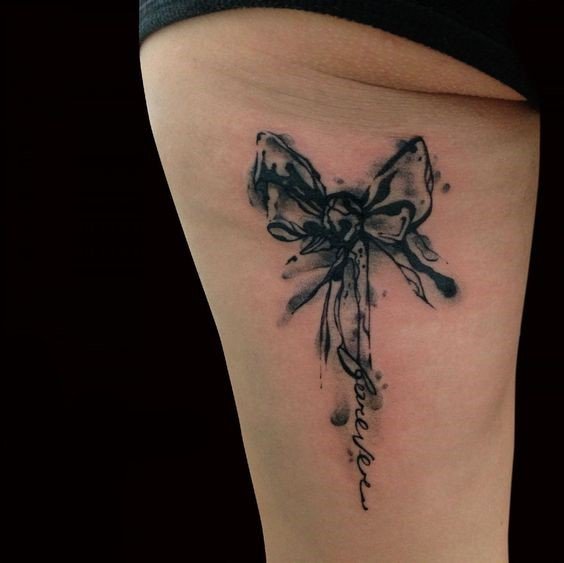 Это могут быть повязки на букетах, подарочных упаковках. Есть множество украшений в форме бантика (брошь, серьги, кулоны и т.п.), часто бант украшает одежду, обувь, сумочку, все что угодно. При этом его главная роль - придавать красоту, делать обычные вещи праздничными, более нарядными и оригинальными. Такое же значение банта и в сфере художественной татуировки. Тату с изображением бантика привлекает своей простотой и необычайной красотой, украшая женское тело, смотрится оно очень оригинально. По популярности татуировки с бантиками находятся в одной категории с изображениями цветов, сердец, звезд и бабочек. Как татуировка, изображения банта довольно яркий, свободный и красивый символ, что превосходно смотрится самостоятельно и с дополнительными элементами. Бант в татуировке может быть исполнен в разных формах, любыми цветами, разного размера и на различных частях тела. Данный рисунок на женском теле в первую очередь говорит о нежности и красоте, добавляя при этом своей обладательнице ноты сексуальности.