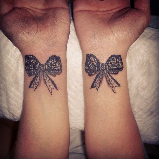 Люди, которые отдают предпочтение татуировкам с изображением бантика, чаще всего добрые, положительные, смотрят на мир с позитивом. Это очень светлые люди, излучающие позитив, радость и веселье. Обычно девушки сами вкладывают в татуировку свое особое значение, это может быть память о веселых моментах, либо важное событие. Очень оригинально выглядят изображения особой даты человека, которая украшена милым бантиком. Конкретных ограничений в нанесении изображения бантика на тело нет, каждый может выбрать место для рисунка и его цветовое соотношение. Очень красочно выглядит бантик в ярких, красочных тонах, не менее эффектно и завораживающе смотрятся бантики исполнены в черных тонах. Особенно великолепно выглядит ажурный бант, украшающий запястье, грудь либо шею девушки.