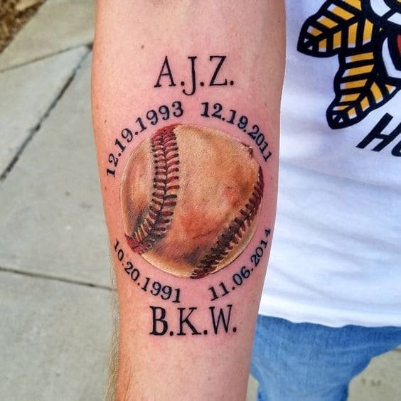 Татуировка может быть выполнена в стиле замершего кадра, рассказывая о каком-то конкретном знаменательном моменте в мире бейсбола. Также это может быть и дата с именем или номером игрока, которые будут обрамлять фирменный знак команды.