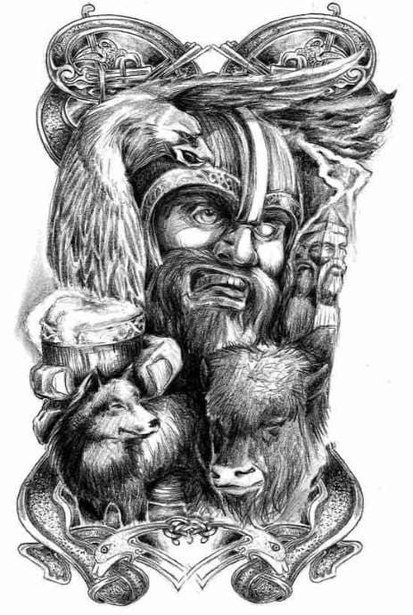 Тату исполняется как в черно-белом, так и в цветном варианте. Особое внимание всегда уделяется орудию воина, его мечу, булаве и так далее. Ведь богатырь в первую очередь - это храбрый воин, а что за воин без оружия? Так же обязательно должны присутствовать кольчуга и щит, ведь без них долго в бою не продержишься.