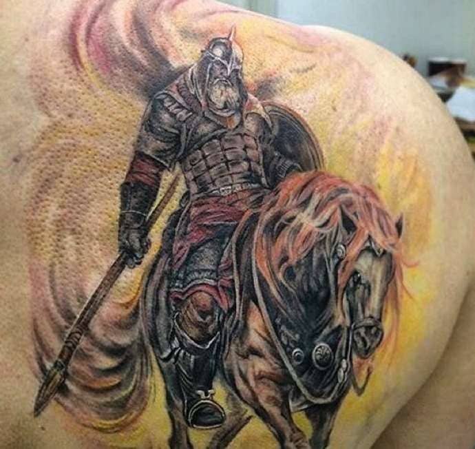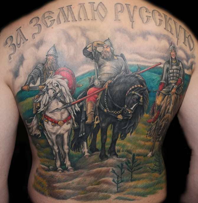 Тату-эскиз богатыря относиться к мужским татуировкам, его выбирают как молодые парни, так и более зрелые мужчины. Такой рисунок на теле эффектно подчеркивает силу мужчины, его твердый дух и уверенность. Помимо этого, тату с богатырем несет в себе особое обозначение.