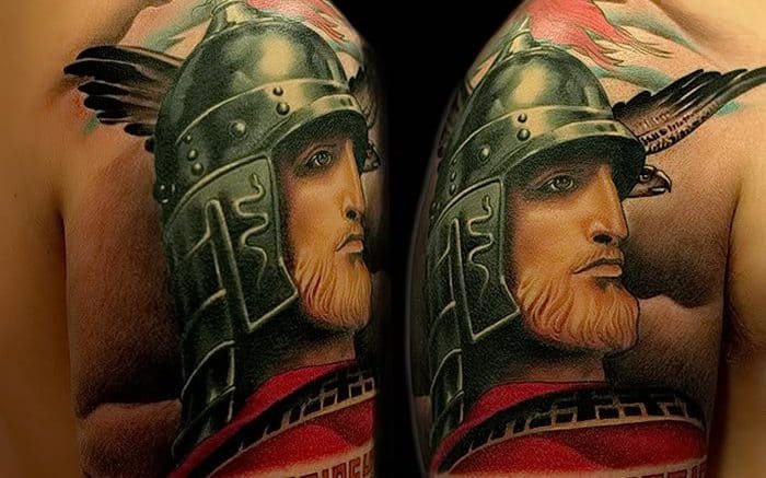 Выбрав его для татуировки, мужчина показывает свою готовность бороться с несправедливостью, и защищать слабых людей. Как правило, тату наноситься на плече либо спину. Изображение как бы призывает человека быть сильным, храбрым, защищать слабых и бороться с несправедливостью.