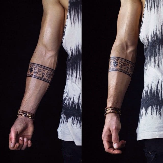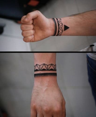 Мужская половина больше предпочитает изображения геометрических фигур, либо кельтские узоры, которые придают уверенность и силу обладателю изображения. Среди мужчин редко встречаются тату просто браслета. Обычно изображение дальше продолжают в рукав, в масштабную работу от запястья к плечу.