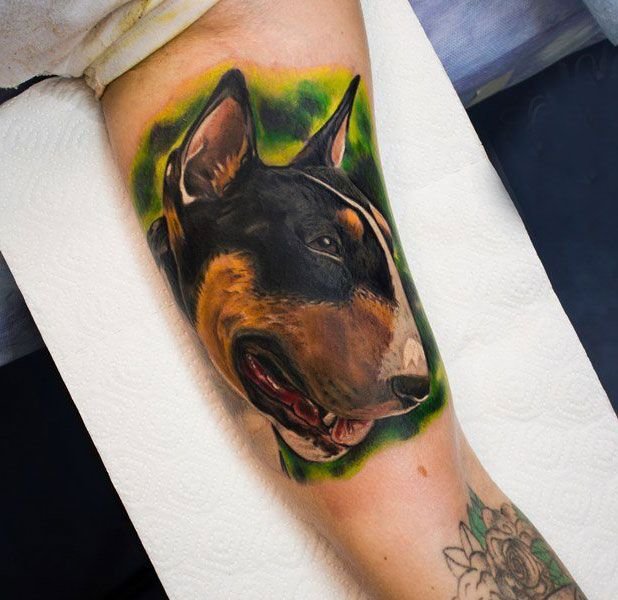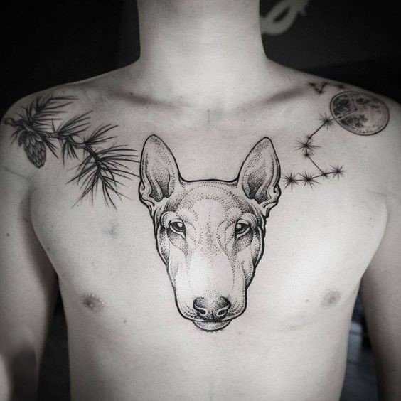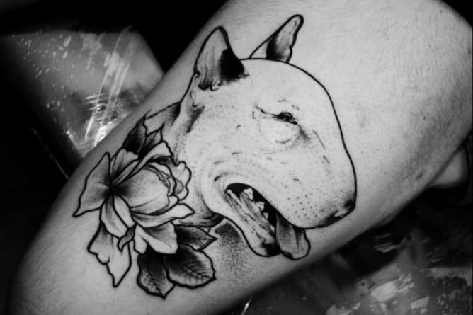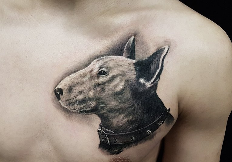Тату это не только прекрасная возможность выразить свою индивидуальность, с помощью нательного рисунка можно отображать свои эмоции, свой настрой, подчеркивать сильные черты характера, либо и вовсе рассказать о своей жизни. Кроме того, татуировки позволяют закрыть различные дефекты в виде шрамов либо ожогов и так далее. Огромное количество людей пользуются услугами тату-сферы, каждый может найти именно тот эскиз, который полноценно подойдет по душе. Достаточно большое количество людей предпочитают украшать свои тела изображениями животных, а в частности портретами собак. Существует немалое количество собачьих пород, в данной статье мы рассмотрим татуировки с изображениями бультерьеров.