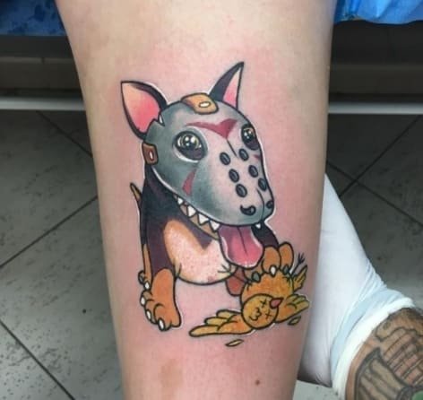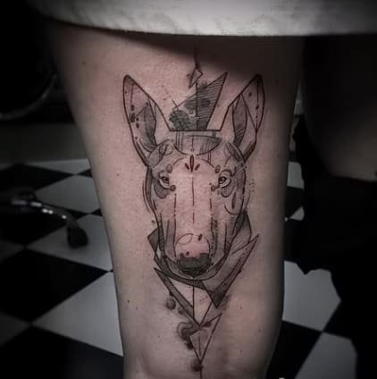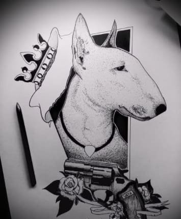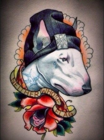 Тату-эскиз бультерьера так же может говорить о любви человека к животному миру, привязанности к собакам, либо любовь именно к данной породе.