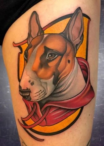 - У бультерьеров мускулистое и крепкое телосложение, тату с его изображением отражает обладателя тату как сильную личность;
