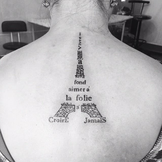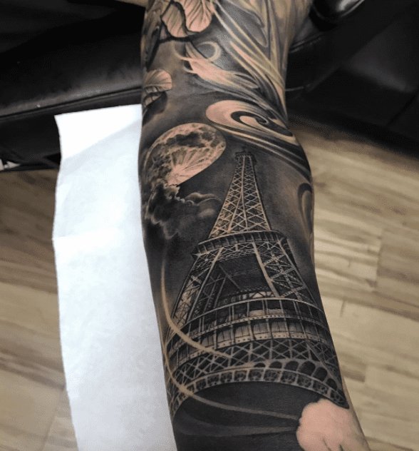 В сфере художественной татуировки довольно часто встречаются изображения различных архитектур, сооружений, памятных мест, среди которых особой популярностью пользуются татуировки с изображением эйфелевой башни.