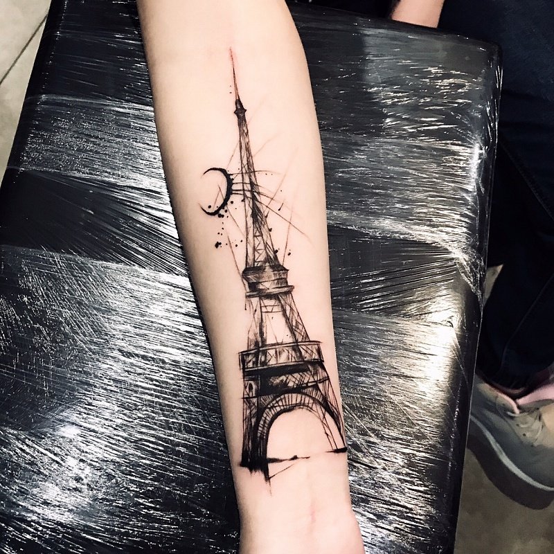 Эйфелева башня прекрасно будет смотреться в любом желаемом стиле, главное - подобрать мастера, который качественно исполнит тату.