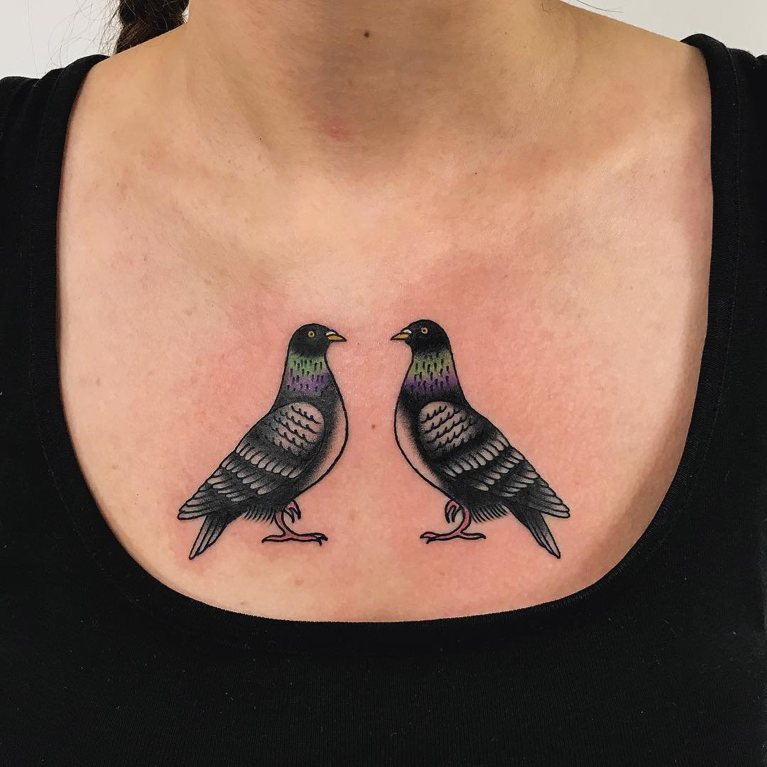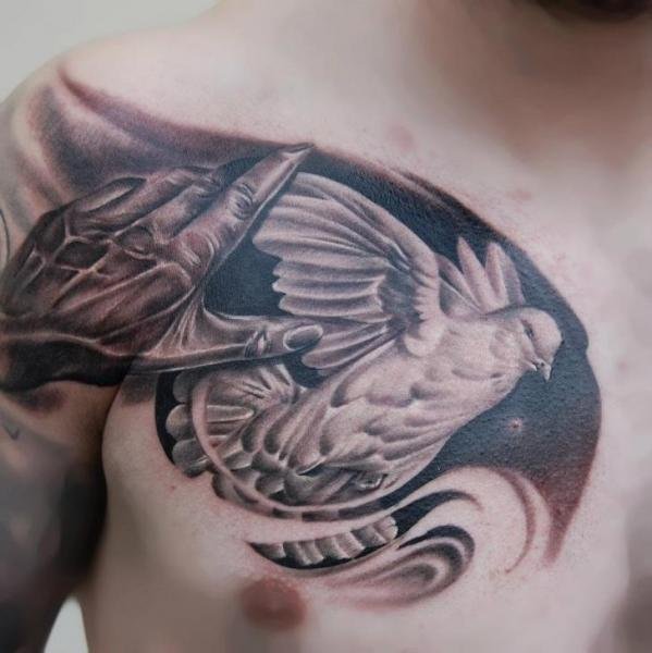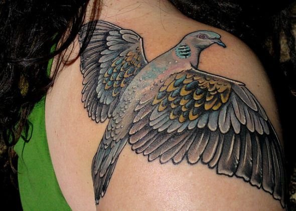 Люди украшают свое тело самыми разнообразными изображениями, различных цветов и размеров. Очень популярны среди большинства людей татуировки с изображением животных, особенно эффективно смотрятся данные татуировки в стиле реализм. Среди девушек очень широко распространены татуировки цветочной тематики. Так же очень популярными татуировками являются изображения птиц, при чем популярностью тату птицы пользуются у обоих полов. Птицы часто связываются с понятием свободы, духовной чистоты, недосягаемости и так далее. Поэтому совершенно не удивительно, что тематика птиц очень популярна в сфере тату. Птицы несут в себе светлую, позитивную энергетику, а так же особое обозначение в искусстве татуировок. Обозначение зависит от того, какая конкретно птица изображена на татуировке, и есть ли на изображении дополнительные элементы. К самым популярным птицам тату искусства относится голубь. Это всем известная птица, тату которой несет в себе особое обозначение.