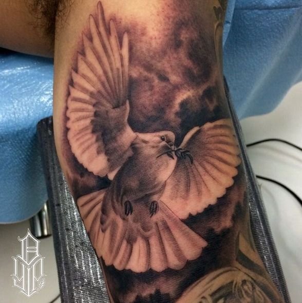 - Многие набивают тату голубь в качестве оберега, который способен защитить от негативной энергетики и злого духа. Так же считается что данная татуировка позволяет человеку искупать все его грехи.