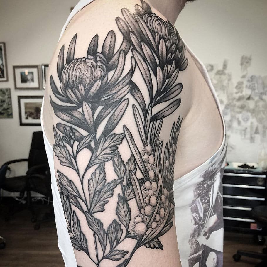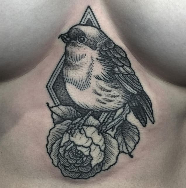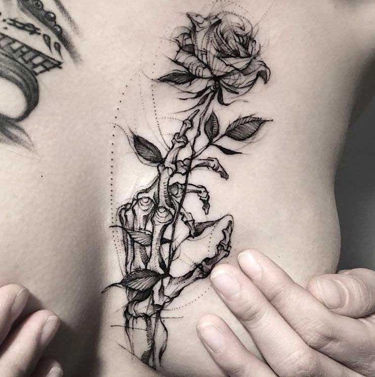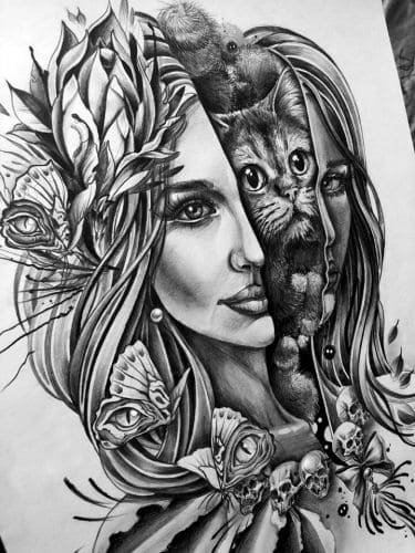 Женщины, как правило, выбирают графические эскизы с изображением цветов, растений, кошек. Довольно часто в данных эскизах присутствуют элементы геометрии. Такая татуировка подчеркивает творческую личность, ранимость души.