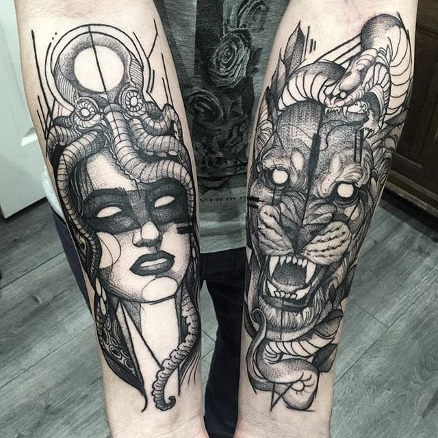 Татуировки в стиле "графика" популярны среди мужчин и женщин, разнятся только сюжеты эскизов.