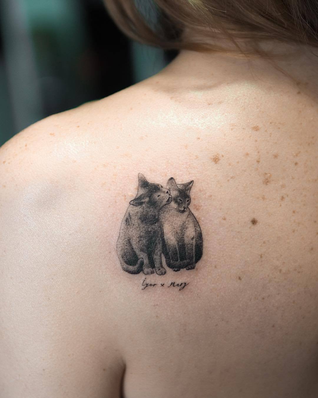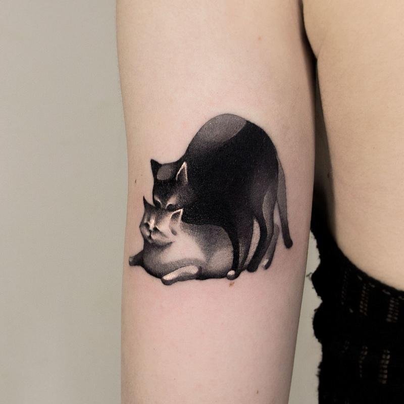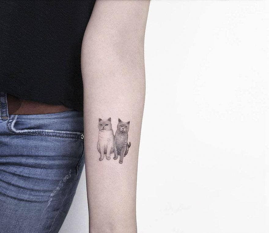 Татуировки с изображением кошек либо котят обычно присущи девушкам, но мужчины так же часто изображают котов на своем теле. У женщин силуэты и образы кошек в основном либо грациозные и изящные, или милые и пушистые мордочки этих животных. Мужчины же предпочитают исполнение котов в более жесткой форме, в их изображениях часто присутствует агрессия, хищный вид, либо с каким ни-будь дополнением. Такие изображения на теле мужчины говорят о его индивидуальности, показывая что у него собственные правила жизни и другие ему не нужны.