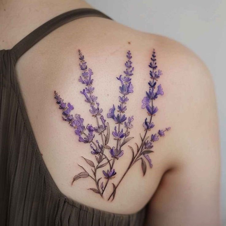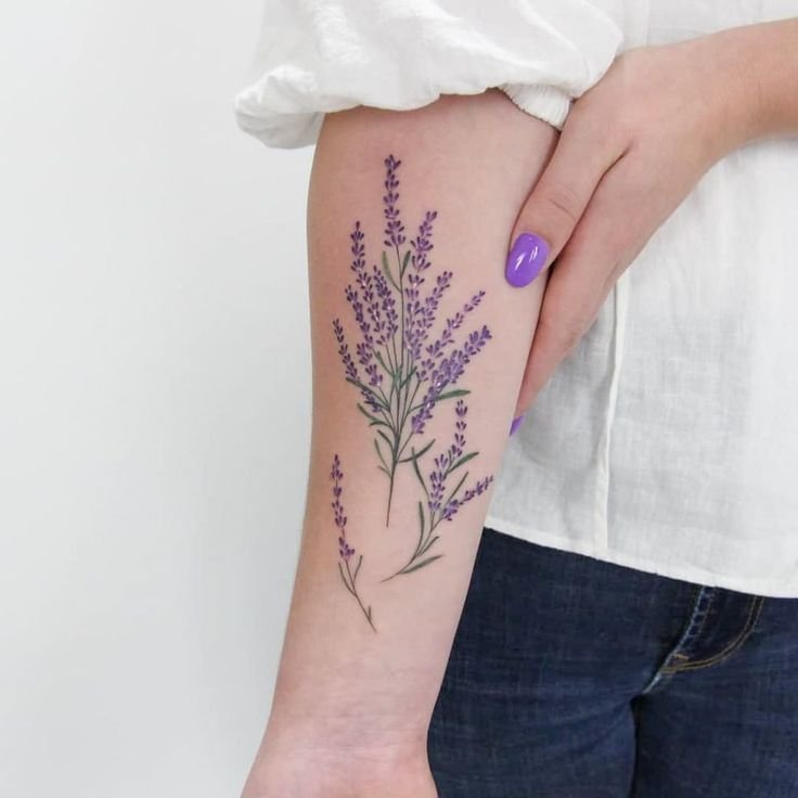 Татуировки с лавандой могут выполняться в различных стилях, каждый из которых подчёркивает уникальные особенности этого растения.