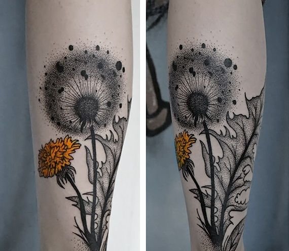 Любители цветов довольно часто выбирают для татуировки изображение одуванчика.