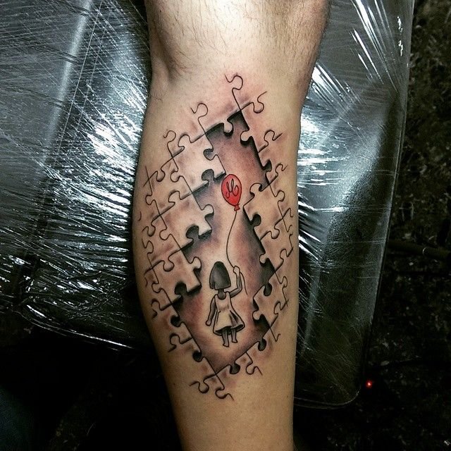 Кто бы мог подумать, что пазлы станут неотъемлемой частью сферы художественной татуировки? А ведь так оно и есть. В тату-сфере эскизы пазла пользуются широким спросом среди женщин и мужчин, многих данное изображение привлекает оригинальностью, загадочностью, многие наделяют тату особым значением. Пазл изображают как отдельным элементом, так и в качестве целого изображения, собранного с множества пазлов.