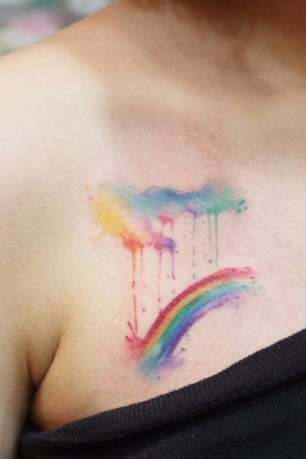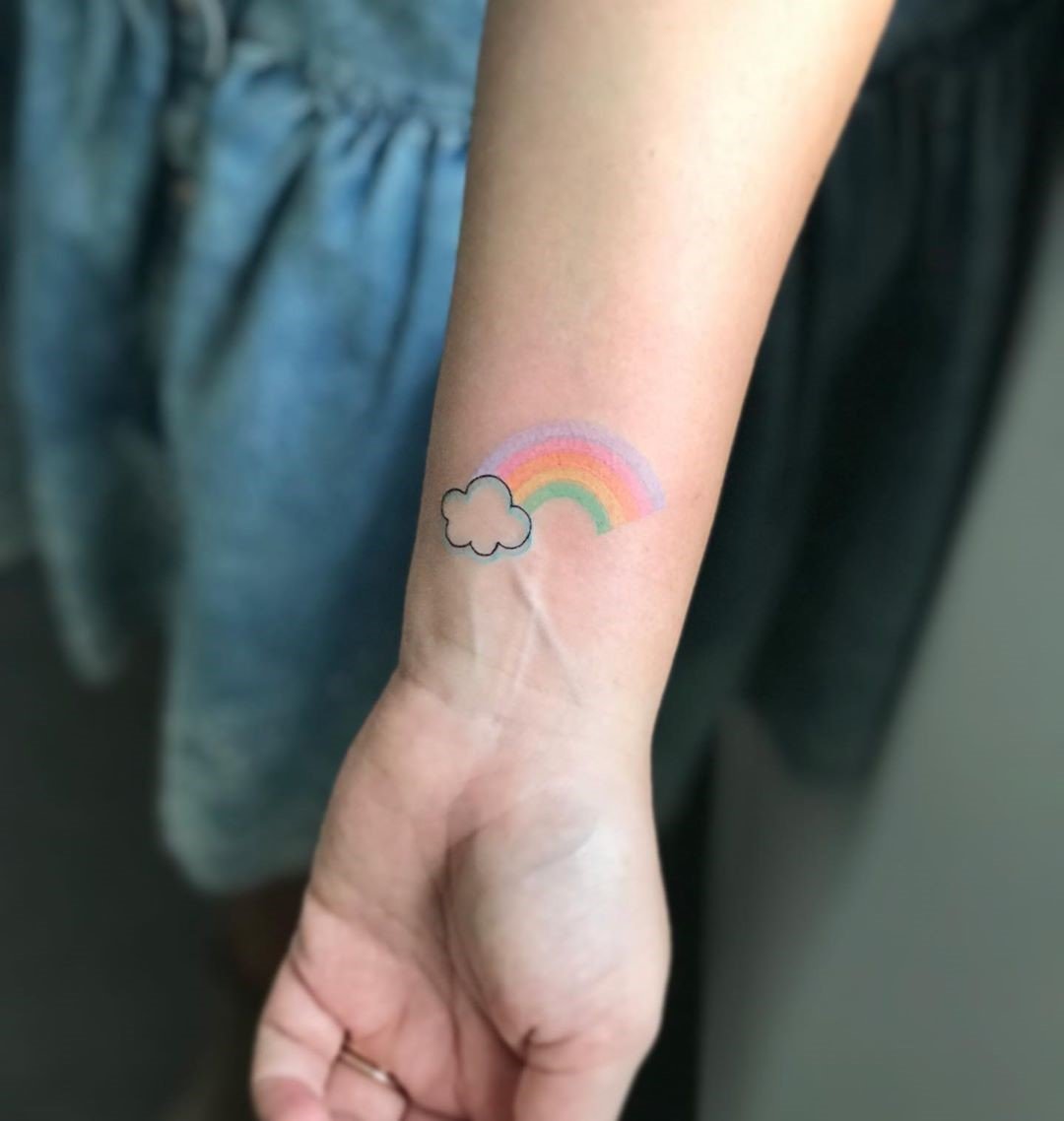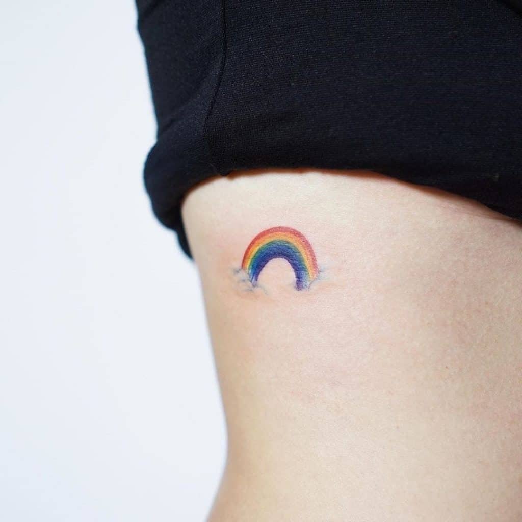 Такое красочное явление как радуга, вызывает исключительно положительные эмоции, в сфере тату так же, данное изображение наполнено положительным обозначением.