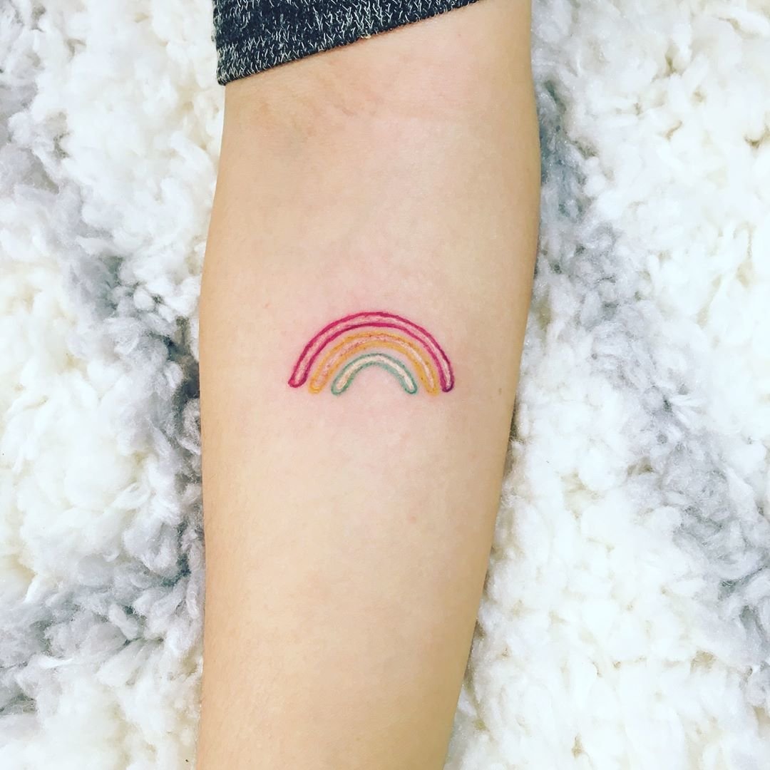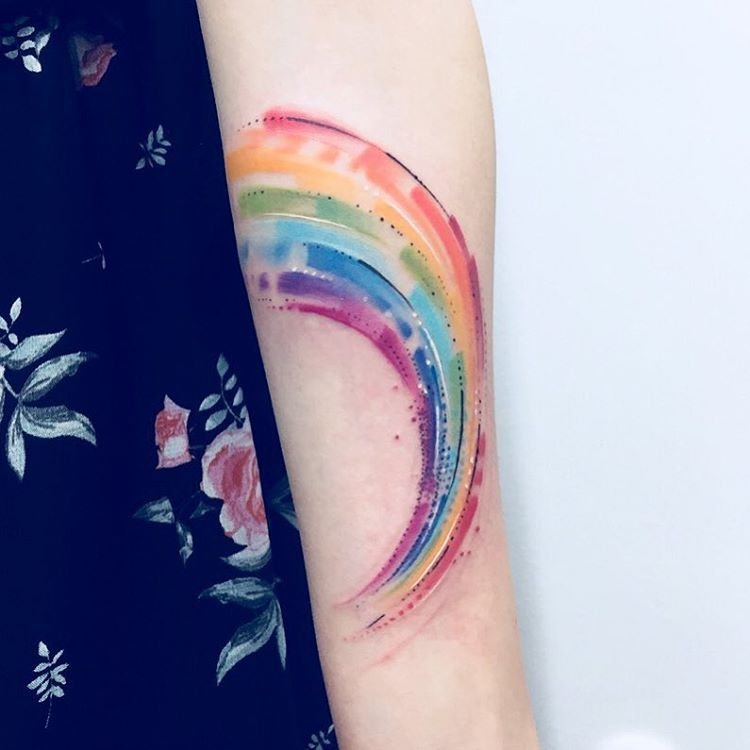 В тату-сфере радугу изображают как в едином варианте, так и с дополнительными элементами. Так же, радуга может служить фоном для основного рисунка, либо же сам рисунок может быть выполнен в радужной расцветке. Такая татуировка всегда выглядит эффектно и красочно, что является основным ее достоинством.